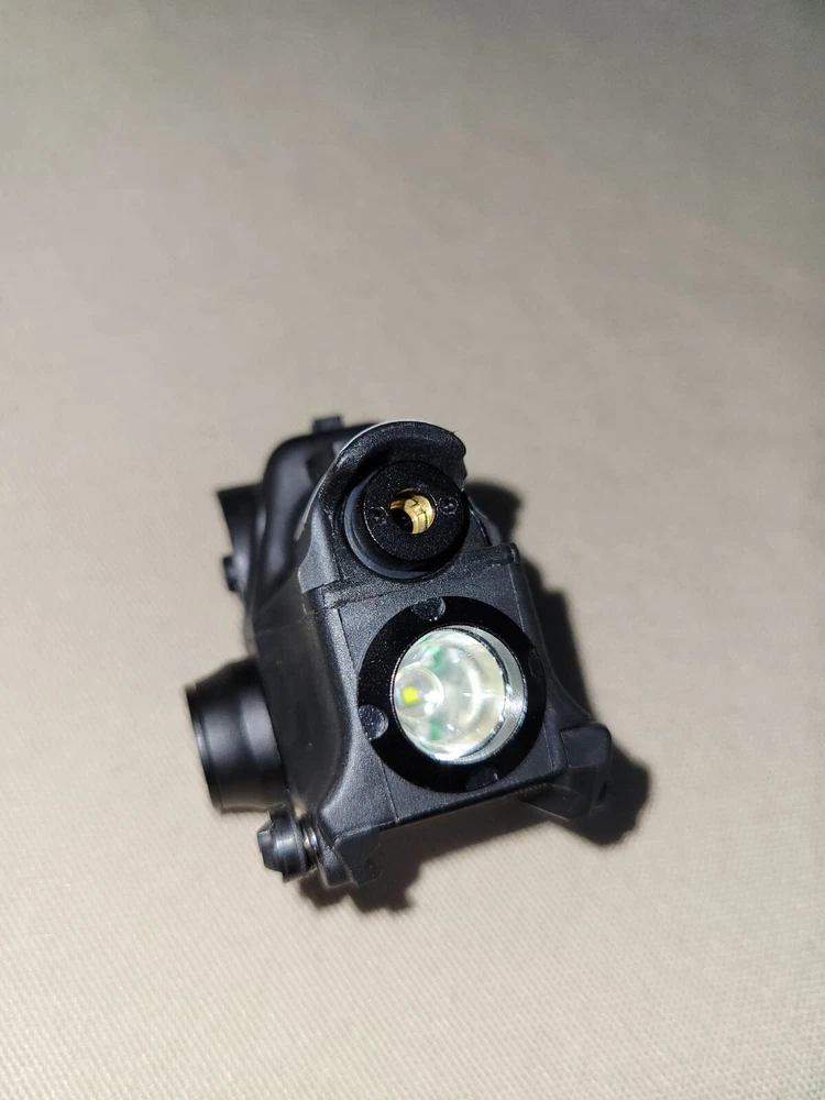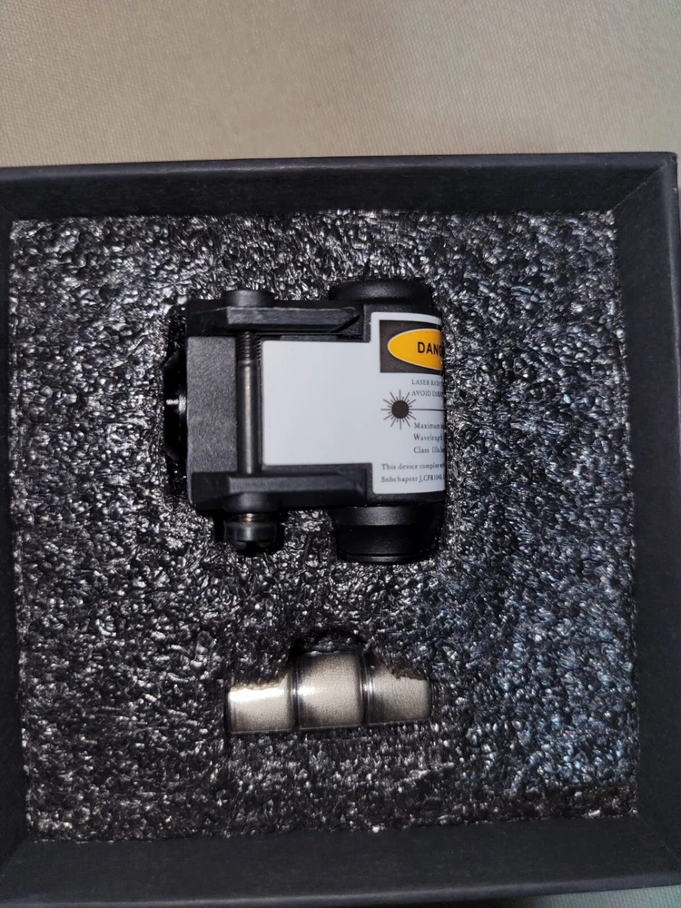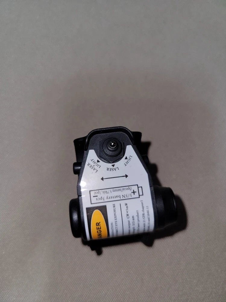 Open box, never used, NEW! SEE PICTURES FOR EXACT ITEM CONDITION Specifications Press the power switch to turn on and off the device. Use one of the two ambidextrous buttons on the side to operate the on/off switch of the laser. Material: Fiber Reinforced Nylon Color: Black Usage: Outdoor sports; lighting Dimensions: 2.0*1.8*1.5in Net weight: 1.6oz/ 46g Accessories: 3 batteries; hollow ring (for you to open the battery cap) Laser Class: ClassIIIa Laser Power less than 5mW Laser Runtime: 3 hour 30 minutes; Light Runtime: 1 hour 30 minutes; Laser & Light Runtime: 30 minutes