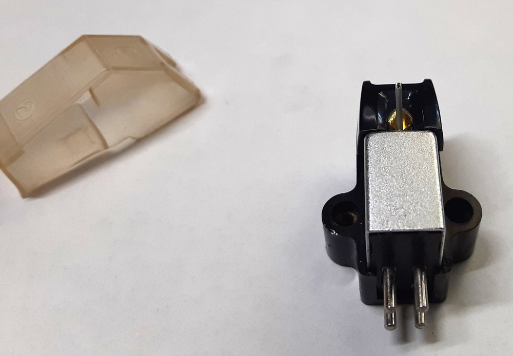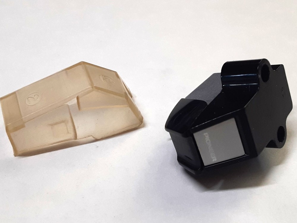 Pioneer PC-110 phono cartridge for sale. This is 3.5 mV moving magnet type. The cartridge is in very good operational and cosmetic condition. The cartridge has 5 hours of play time only. The cartridge equipped with Spherical stylus. Specifications: Output: 3.5 mV Tracks: 1.5-2.5 gram Loads: 47 kOhm Unloads: 450 Ohm Compliance: 8.5 Sell: $21 Shipping inside USA is $6 Worldwide shipping is $19