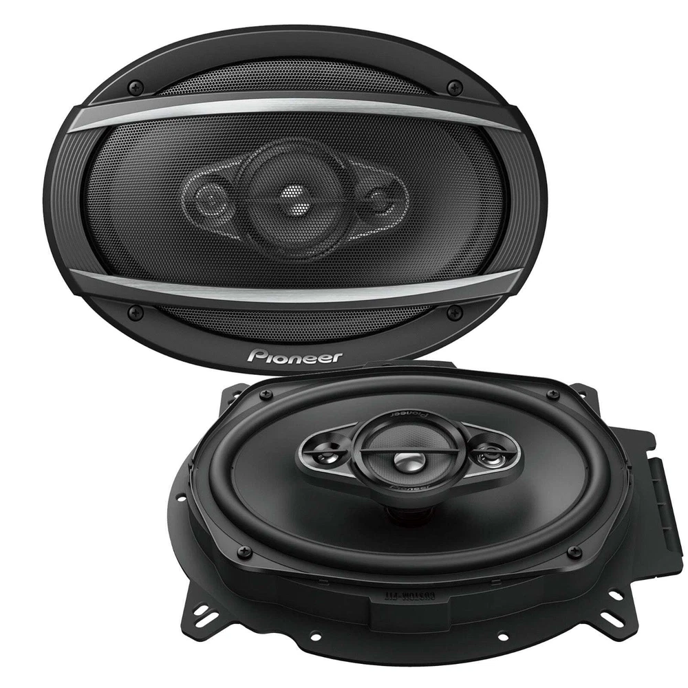 Pioneer TS-A6960F 6x9" 4-Way 450Watt Coaxial Car Audio Speakers Interchange Part Number: TS-A6967 These Pioneer TS-A6960F 6x9" 4-way car audio speakers are the elite quality speakers to take your car's entertainment system to the next level. These speakers feature a carbon and mica-reinforced IMPP cone and a long symmetrical voice coil, which enhances the depth and richness of the bass and minimizes distortion. With an elastic polymer surround, a metal woofer basket, and an injection-molded polypropylene cone, these speakers deliver incredible sound output and a durable construction built to last prolonged use. General Features: 6x9" 4-Way Audio Speakers Magnetic Circuit Long Symmetrical Voice Coil Elastic Polymer Surround Y-35 Woofer Magnet Metal Woofer Basket Woofer Magnet Weight: 320g Carbon & Mica Reinforced IMPP Composite Woofer Cone Max Music Power (Nominal): 450W MAX (90W Nom) Frequency Response: 35Hz - 24kHz (-20dB) Sensitivity: 89dB (±1.5dB)(1W/1m) Impedance: 4 Ohms Mounting Depth: 72mm Mounting Depth with Mount Adapter: 62mm Cut Out Dimensions: 153mm x 222mm 450 Watts Max Power (90 Watts Nominal) 18mm Tweeter and 11mm Super Tweeter 2-1/4" cellulose fiber cone midrange 6 x 9" carbon and mica reinforced Injection Molded Polypropylene (IMPP) cone construction Carbon- and Mica-Reinforced IMPP Woofer Elastic Polymer Surround 2 1/4" Cellulose Fiber Cone Midrange Twin PET (Polyethylene Terephthalate) Hard Dome Tweeters 450 Watts Peak Power Cutout Diameter: 6.02" x 8.74" Top-Mount Depth: 2-7/8" Grilles Included Technical Specifications: System: System Type: 4-way Coaxial Sound Pressure Level (Sensitivity): 89 dB (+- 1.5dB) Frequency Range: 35 Hz to 24 kHz Maximum Peak Power Handling: 450 Watts Nominal Impedance: 4 ohms Woofer: Diameter: 6 x 9" Cone Material: Carbon and mica-reinforced IMPP in moonstone gray Surround Material: Elastic polymer Magnet Material: Ferrite Magnet Weight: 11.3 oz Mounting Depth: 2-7/8" Tweeter: Type: Polyethylene terephthalate (PET) dome tweeter (x2) Diameter: 11 mm and 18 mm Crossover Network: Crossover Frequency: 3,600 Hz Package Contents: Pioneer TS-A6960F Owner's manual 2x Pioneer TS-A6960F 450 Watts Speakers Wire Harness Screws Warning: This product can expose you to, known to the State of California to cause cancer. For more information, go to P65Warnings.ca.