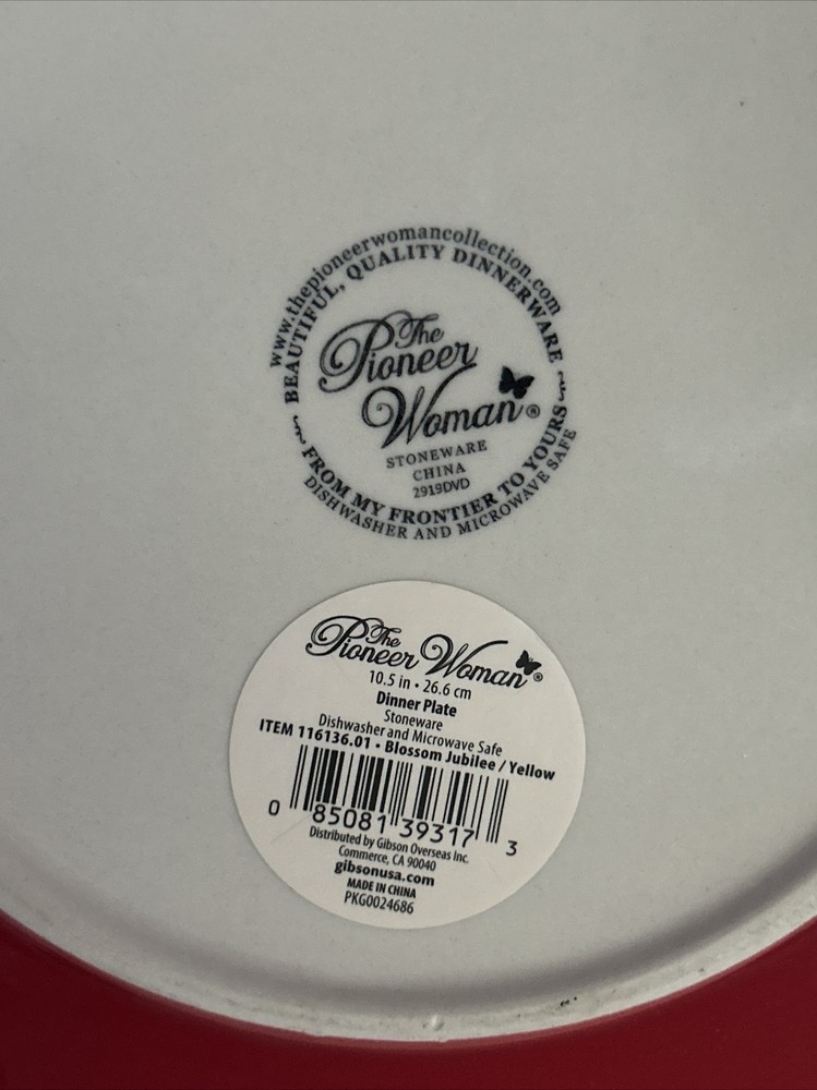 This The Pioneer Woman Blossom Jubilee 10.5" Dinner Plate ~ Replacement is in great preowned condition. It does have some slight utensil marks, but it has NO chips or cracks. Please review all pictures for proper assessment of its preowned condition.