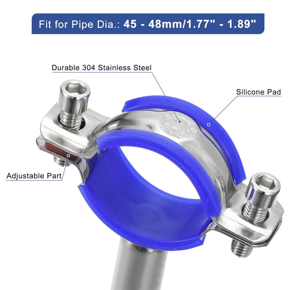 Document Description:Made of good hardness 304 stainless steel material, rust and corrosion-resistant, not easy to break or deform, durable enough for long-term use, can be used in high temperature or humid environments, suitable for indoors and outdoors.With a rubber cushion, it can increase friction and fit tightly with the tube, the nut can lock the flange and the screw rod tightly and prevent it from falling off easily. The diameter of the pipe clamp is adjustable, with an adjustment range of 15 to 19mm, fit for various pipes, wall mount and ceiling mount.Easy to install, the package comes with mounting parts for quick installation, just mark the desired position, then install the bracket with the expansion screw and screws, and fix the pipe clamp to the pipe.The pipe clamps can be used for pipe, tube or rod fixation, pipe support, pipe fixing, pole support and more, good for the kitchen, bathroom, office, etc.Specification:Material: 304 Stainless SteelFit for Pipe Dia.: 45 - 48mm/1.77" - 1.89"Bracket Total Size: 60x50mm/2.36"x1.97"(Dia.*H)Expand Overall Length: 95mmScrew Total Size: M6x30mmPackage Content:1Pcs x Pipe Support; 1Pcs x M6 Wrench; 3Pcs x Screws; 3Pcs x Expansion Screws Pipe Supports Adjustable Pipe Bracket Clamp Pipe Strap for 45-48mm Pipe Description: Made of good hardness 304 stainless steel material, rust and corrosion-resistant, not easy to break or deform, durable enough for long-term use, can be used in high temperature or humid environments, suitable for indoors and outdoors. With a rubber cushion, it can increase friction and fit tightly with the tube, the nut can lock the flange and the screw rod tightly and prevent it from falling off easily. The diameter of the pipe clamp is adjustable, with an adjustment range of 15 to 19mm, fit for various pipes, wall mount and ceiling mount. Easy to install, the package comes with mounting parts for quick installation, just mark the desired position, then install the bracket with the expansion screw and screws, and fix the pipe clamp to the pipe. The pipe clamps can be used for pipe, tube or rod fixation, pipe support, pipe fixing, pole support and more, good for the kitchen, bathroom, office, etc. Specification: Material: 304 Stainless Steel Fit for Pipe Dia.: 45 - 48mm/1.77" - 1.89" Bracket Total Size: 60x50mm/2.36"x1.97"(Dia.*H) Expand Overall Length: 95mm Screw Total Size: M6x30mm Package Content: 1Pcs x Pipe Support; 1Pcs x M6 Wrench; 3Pcs x Screws; 3Pcs x Expansion Screws Hot Item Payment 1.We accept eBay payment . 2.Payment must be received within 7 business days of auction closing. Shipping 1.We ship to your eBay or Paypal address. Please make sure your eBay and Paypal address is correct before you pay. 2.Items will be shipped within 1-3 business day when we received payment. 3.Delivery time depends on destination and other factors. Description Policy Pipe Supports Adjustable Pipe Bracket Clamp Pipe Strap for 45-48mm Pipe Description: Made of good hardness 304 stainless steel material, rust and corrosion-resistant, not easy to break or deform, durable enough for long-term use, can be used in high temperature or humid environments, suitable for indoors and outdoors. With a rubber cushion, it can increase friction and fit tightly with the tube, the nut can lock the flange and the screw rod tightly and prevent it from falling off easily. The diameter of the pipe clamp is adjustable, with an adjustment range of 15 to 19mm, fit for various pipes, wall mount and ceiling mount. Easy to install, the package comes with mounting parts for quick installation, just mark the desired position, then install the bracket with the expansion screw and screws, and fix the pipe clamp to the pipe. The pipe clamps can be used for pipe, tube or rod fixation, pipe support, pipe fixing, pole support and more, good for the kitchen, bathroom, office, etc. Specification: Material: 304 Stainless Steel Fit for Pipe Dia.: 45 - 48mm/1.77" - 1.89" Bracket Total Size: 60x50mm/2.36"x1.97"(Dia.*H) Expand Overall Length: 95mm Screw Total Size: M6x30mm Package Content: 1Pcs x Pipe Support; 1Pcs x M6 Wrench; 3Pcs x Screws; 3Pcs x Expansion Screws Hot Item Payment 1.We accept eBay payment . 2.Payment must be received within 7 business days of auction closing. Shipping 1.We ship to your eBay or Paypal address. Please make sure your eBay and Paypal address is correct before you pay. 2.Items will be shipped within 1-3 business day when we received payment. 3.Delivery time depends on destination and other factors.