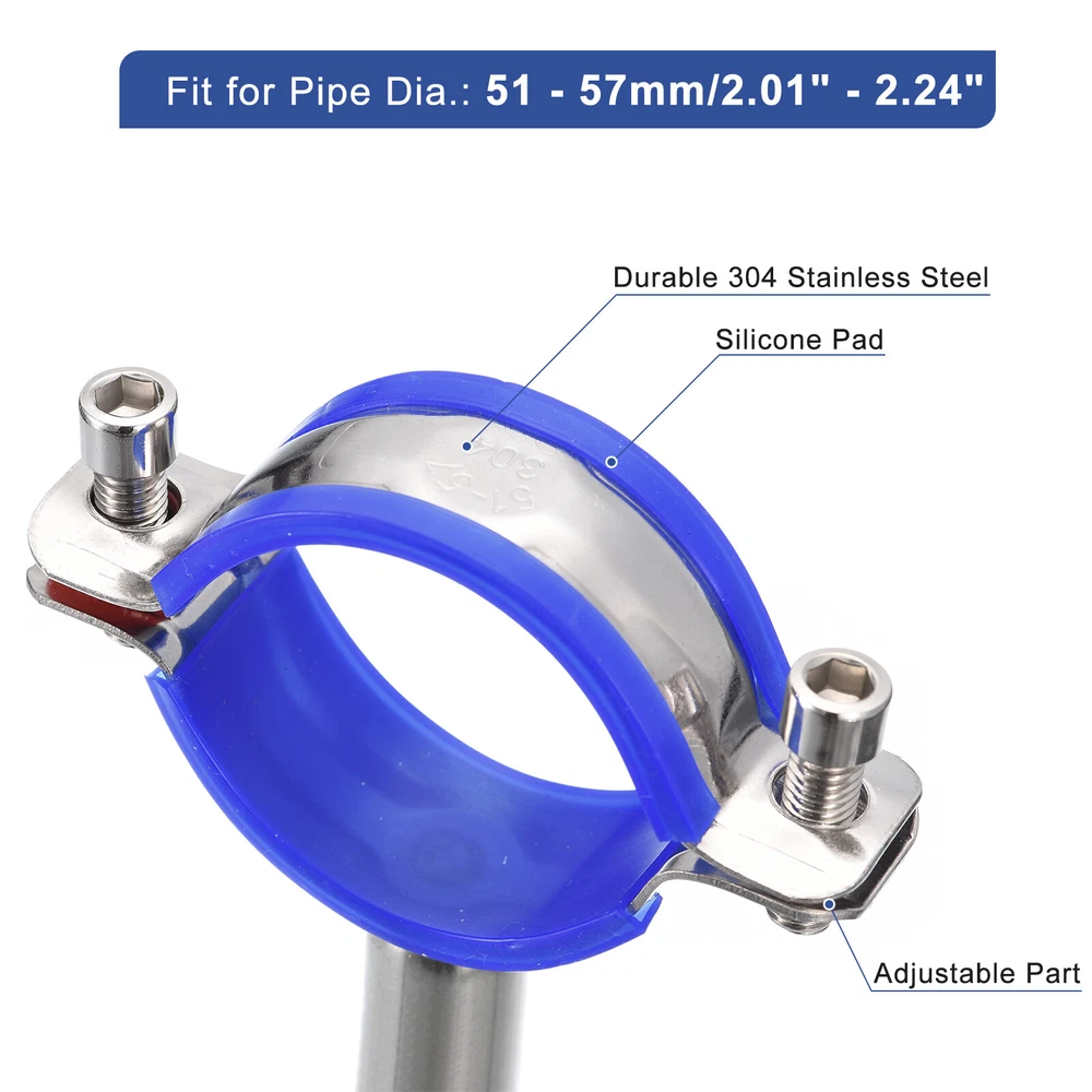 Document Description:Made of good hardness 304 stainless steel material, rust and corrosion-resistant, not easy to break or deform, durable enough for long-term use, can be used in high temperature or humid environments, suitable for indoors and outdoors.With a rubber cushion, it can increase friction and fit tightly with the tube, the nut can lock the flange and the screw rod tightly and prevent it from falling off easily. The diameter of the pipe clamp is adjustable, with an adjustment range of 15 to 19mm, fit for various pipes, wall mount and ceiling mount.Easy to install, the package comes with mounting parts for quick installation, just mark the desired position, then install the bracket with the expansion screw and screws, and fix the pipe clamp to the pipe.The pipe clamps can be used for pipe, tube or rod fixation, pipe support, pipe fixing, pole support and more, good for the kitchen, bathroom, office, etc.Specification:Material: 304 Stainless SteelFit for Pipe Dia.: 51 - 57mm/2.01" - 2.24"Bracket Total Size: 60x50mm/2.36"x1.97"(Dia.*H)Expand Overall Length: 108mmScrew Total Size: M6x30mmPackage Content:1Pcs x Pipe Support; 1Pcs x M6 Wrench; 3Pcs x Screws; 3Pcs x Expansion Screws Pipe Supports Adjustable Pipe Bracket Clamp Pipe Strap for 51-57mm Pipe Description: Made of good hardness 304 stainless steel material, rust and corrosion-resistant, not easy to break or deform, durable enough for long-term use, can be used in high temperature or humid environments, suitable for indoors and outdoors. With a rubber cushion, it can increase friction and fit tightly with the tube, the nut can lock the flange and the screw rod tightly and prevent it from falling off easily. The diameter of the pipe clamp is adjustable, with an adjustment range of 15 to 19mm, fit for various pipes, wall mount and ceiling mount. Easy to install, the package comes with mounting parts for quick installation, just mark the desired position, then install the bracket with the expansion screw and screws, and fix the pipe clamp to the pipe. The pipe clamps can be used for pipe, tube or rod fixation, pipe support, pipe fixing, pole support and more, good for the kitchen, bathroom, office, etc. Specification: Material: 304 Stainless Steel Fit for Pipe Dia.: 51 - 57mm/2.01" - 2.24" Bracket Total Size: 60x50mm/2.36"x1.97"(Dia.*H) Expand Overall Length: 108mm Screw Total Size: M6x30mm Package Content: 1Pcs x Pipe Support; 1Pcs x M6 Wrench; 3Pcs x Screws; 3Pcs x Expansion Screws Hot Item Payment 1.We accept eBay payment . 2.Payment must be received within 7 business days of auction closing. Shipping 1.We ship to your eBay or Paypal address. Please make sure your eBay and Paypal address is correct before you pay. 2.Items will be shipped within 1-3 business day when we received payment. 3.Delivery time depends on destination and other factors. Description Policy Pipe Supports Adjustable Pipe Bracket Clamp Pipe Strap for 51-57mm Pipe Description: Made of good hardness 304 stainless steel material, rust and corrosion-resistant, not easy to break or deform, durable enough for long-term use, can be used in high temperature or humid environments, suitable for indoors and outdoors. With a rubber cushion, it can increase friction and fit tightly with the tube, the nut can lock the flange and the screw rod tightly and prevent it from falling off easily. The diameter of the pipe clamp is adjustable, with an adjustment range of 15 to 19mm, fit for various pipes, wall mount and ceiling mount. Easy to install, the package comes with mounting parts for quick installation, just mark the desired position, then install the bracket with the expansion screw and screws, and fix the pipe clamp to the pipe. The pipe clamps can be used for pipe, tube or rod fixation, pipe support, pipe fixing, pole support and more, good for the kitchen, bathroom, office, etc. Specification: Material: 304 Stainless Steel Fit for Pipe Dia.: 51 - 57mm/2.01" - 2.24" Bracket Total Size: 60x50mm/2.36"x1.97"(Dia.*H) Expand Overall Length: 108mm Screw Total Size: M6x30mm Package Content: 1Pcs x Pipe Support; 1Pcs x M6 Wrench; 3Pcs x Screws; 3Pcs x Expansion Screws Hot Item Payment 1.We accept eBay payment . 2.Payment must be received within 7 business days of auction closing. Shipping 1.We ship to your eBay or Paypal address. Please make sure your eBay and Paypal address is correct before you pay. 2.Items will be shipped within 1-3 business day when we received payment. 3.Delivery time depends on destination and other factors.