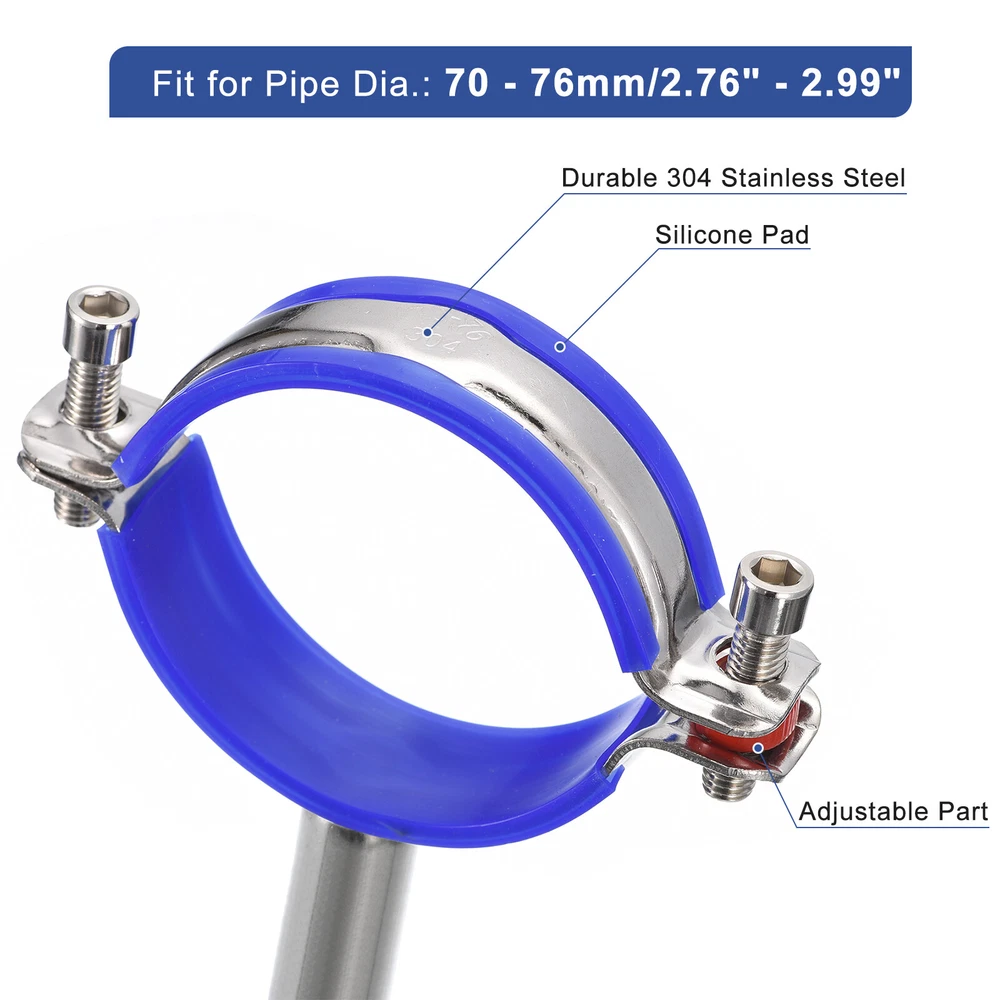 Document Description:Made of good hardness 304 stainless steel material, rust and corrosion-resistant, not easy to break or deform, durable enough for long-term use, can be used in high temperature or humid environments, suitable for indoors and outdoors.With a rubber cushion, it can increase friction and fit tightly with the tube, the nut can lock the flange and the screw rod tightly and prevent it from falling off easily. The diameter of the pipe clamp is adjustable, with an adjustment range of 15 to 19mm, fit for various pipes, wall mount and ceiling mount.Easy to install, the package comes with mounting parts for quick installation, just mark the desired position, then install the bracket with the expansion screw and screws, and fix the pipe clamp to the pipe.The pipe clamps can be used for pipe, tube or rod fixation, pipe support, pipe fixing, pole support and more, good for the kitchen, bathroom, office, etc.Specification:Material: 304 Stainless SteelFit for Pipe Dia.: 70 - 76mm/2.76" - 2.99"Bracket Total Size: 60x50mm/2.36"x1.97"(Dia.*H)Expand Overall Length: 130mmScrew Total Size: M6x30mmPackage Content:1Pcs x Pipe Support; 1Pcs x M6 Wrench; 3Pcs x Screws; 3Pcs x Expansion Screws Pipe Supports Adjustable Pipe Bracket Clamp Pipe Strap for 70-76mm Pipe Description: Made of good hardness 304 stainless steel material, rust and corrosion-resistant, not easy to break or deform, durable enough for long-term use, can be used in high temperature or humid environments, suitable for indoors and outdoors. With a rubber cushion, it can increase friction and fit tightly with the tube, the nut can lock the flange and the screw rod tightly and prevent it from falling off easily. The diameter of the pipe clamp is adjustable, with an adjustment range of 15 to 19mm, fit for various pipes, wall mount and ceiling mount. Easy to install, the package comes with mounting parts for quick installation, just mark the desired position, then install the bracket with the expansion screw and screws, and fix the pipe clamp to the pipe. The pipe clamps can be used for pipe, tube or rod fixation, pipe support, pipe fixing, pole support and more, good for the kitchen, bathroom, office, etc. Specification: Material: 304 Stainless Steel Fit for Pipe Dia.: 70 - 76mm/2.76" - 2.99" Bracket Total Size: 60x50mm/2.36"x1.97"(Dia.*H) Expand Overall Length: 130mm Screw Total Size: M6x30mm Package Content: 1Pcs x Pipe Support; 1Pcs x M6 Wrench; 3Pcs x Screws; 3Pcs x Expansion Screws Hot Item Payment 1.We accept eBay payment . 2.Payment must be received within 7 business days of auction closing. Shipping 1.We ship to your eBay or Paypal address. Please make sure your eBay and Paypal address is correct before you pay. 2.Items will be shipped within 1-3 business day when we received payment. 3.Delivery time depends on destination and other factors. Description Policy Pipe Supports Adjustable Pipe Bracket Clamp Pipe Strap for 70-76mm Pipe Description: Made of good hardness 304 stainless steel material, rust and corrosion-resistant, not easy to break or deform, durable enough for long-term use, can be used in high temperature or humid environments, suitable for indoors and outdoors. With a rubber cushion, it can increase friction and fit tightly with the tube, the nut can lock the flange and the screw rod tightly and prevent it from falling off easily. The diameter of the pipe clamp is adjustable, with an adjustment range of 15 to 19mm, fit for various pipes, wall mount and ceiling mount. Easy to install, the package comes with mounting parts for quick installation, just mark the desired position, then install the bracket with the expansion screw and screws, and fix the pipe clamp to the pipe. The pipe clamps can be used for pipe, tube or rod fixation, pipe support, pipe fixing, pole support and more, good for the kitchen, bathroom, office, etc. Specification: Material: 304 Stainless Steel Fit for Pipe Dia.: 70 - 76mm/2.76" - 2.99" Bracket Total Size: 60x50mm/2.36"x1.97"(Dia.*H) Expand Overall Length: 130mm Screw Total Size: M6x30mm Package Content: 1Pcs x Pipe Support; 1Pcs x M6 Wrench; 3Pcs x Screws; 3Pcs x Expansion Screws Hot Item Payment 1.We accept eBay payment . 2.Payment must be received within 7 business days of auction closing. Shipping 1.We ship to your eBay or Paypal address. Please make sure your eBay and Paypal address is correct before you pay. 2.Items will be shipped within 1-3 business day when we received payment. 3.Delivery time depends on destination and other factors.