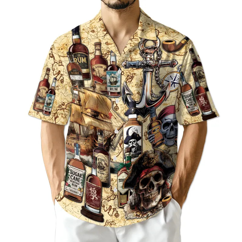 Ghost Pirate Skull Hawaii Shirt Men's Beach Vacation Aloha
