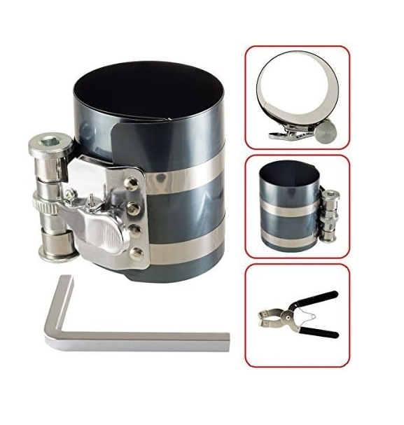 This piston ring compressor and plier set is a must-have for any mechanic! It makes installing and removing piston rings up to 6.4mm a breeze without twisting them. The adjustable design (53mm-175mm) fits most pistons, while the spring mechanism ensures precise control. The nickel-plated carbon steel resists corrosion, and the vinyl-coated handles provide a comfortable grip. Perfect for smooth piston work with positive locking action—highly recommended for hassle-free engine repairs!