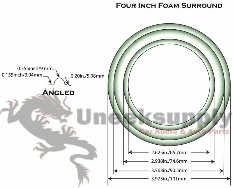 General Features: 4" FOAM SPEAKER SURROUND KIT BRAND: IMC Audio USE: To Repair 4" Speakers or Subwoofers FEATURES: This package includes the following: 2 - 4" Foam Speaker Surrounds Instructions See Picture 2 for the Dimensions Listing and template services provided by inkFrog