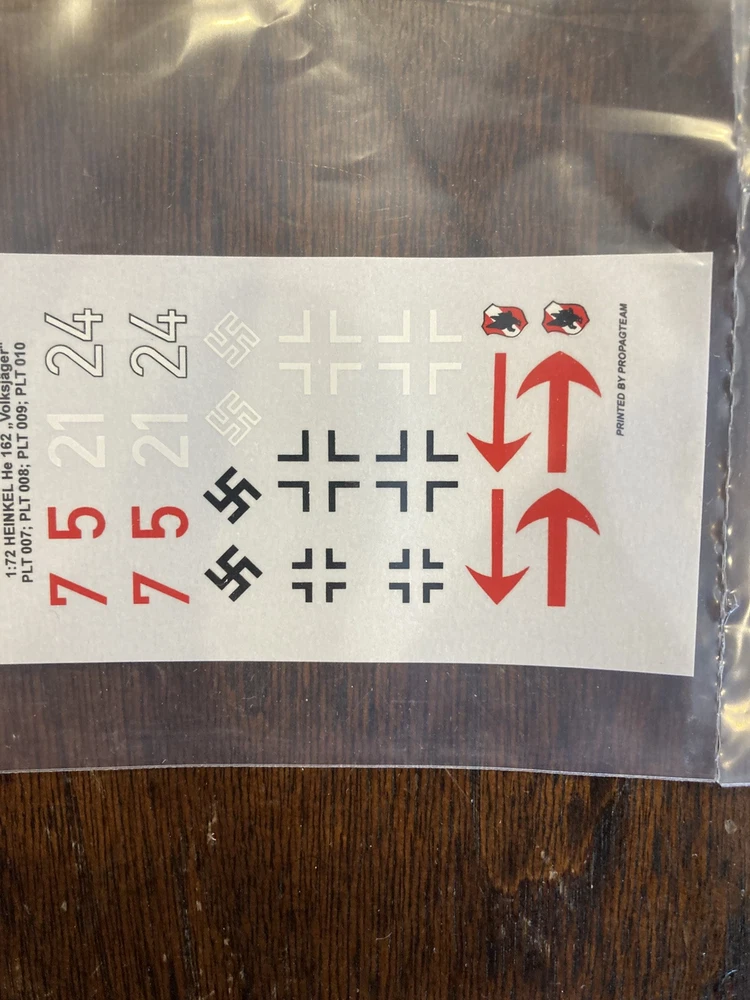 Planet Models He 162 is a great little resin cast kit. It comes with decals, a vacuformed canopy, and metal cast gear. The decals and canopy are in great condition and should make for a smooth build.