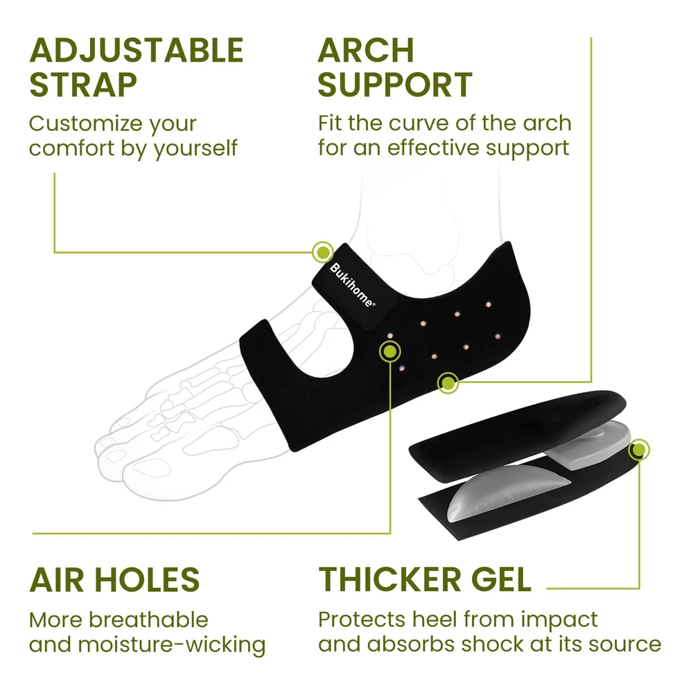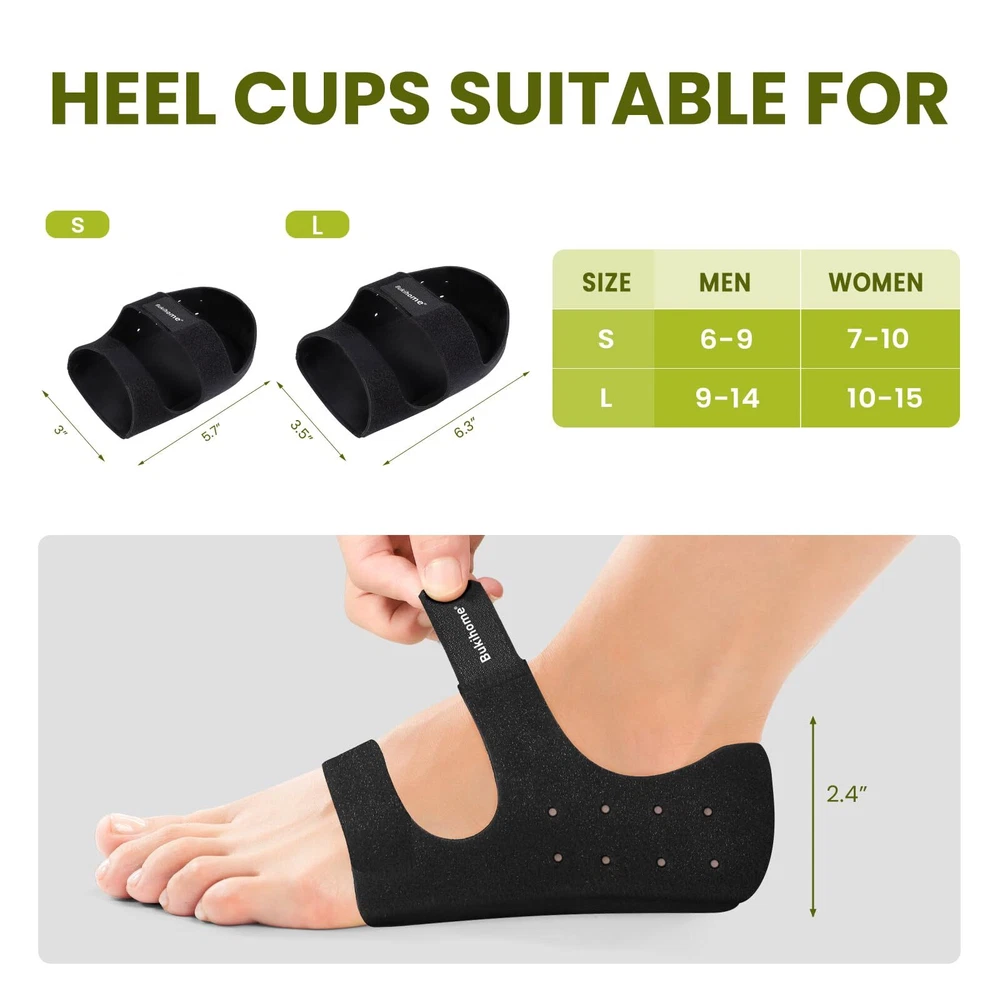 UPGRAGE DESIGN - The upgraded heel protector with "air holes" is more breathable and moisture-wicking, keeping your feet nice and comfort. Made of skin-friendly fabric providing better fit, plantar fasciitis heel cups not easily wear down and it can take the impact off the area, providing persistent cushioning and support. HEEL PAIN RELIEF - Built-in thicker gel, heel cushion cups can effectively absorb impact, provide support and chushion for your feet, reduce pain or discomfort from plantar fasciitis, achilles tendonitis, injured tendon,heel spur, cracked heel pain, stress fractures and swelling. SOFT & COMFORTABLE - These heel cushion pads disperse heel pressure for shock absorption and better comfort. It is an excellent choice for those who work on their feet for long hours, as it can make shoes more comfortable and reduce foot fatigue. The plantar fasciitis heel inserts is especially beneficial for shoes that lack proper cushioning or support. Flexible & Adjustable Design - Adjustable elastic band holds securely, heel support cushions are adjustable to fit different sizes of feet, keep your feet snug and comfortable, and keep the gel heel protector pads in place as you walk around.This heel spur relief products fit well in dress shoes, boots, sports shoes, canvas shoes, sandals, sneakers or barefeet. Package includes: 1 Pair - Small size black heel insert cushion cup for heel pain, would be for both women and men, protect your foot while in physical activities,daily work,or sleep at night. The Small heel protectors fit for Women: US Shoe Sizes 6-9, Men: US Shoe Sizes 7-10.