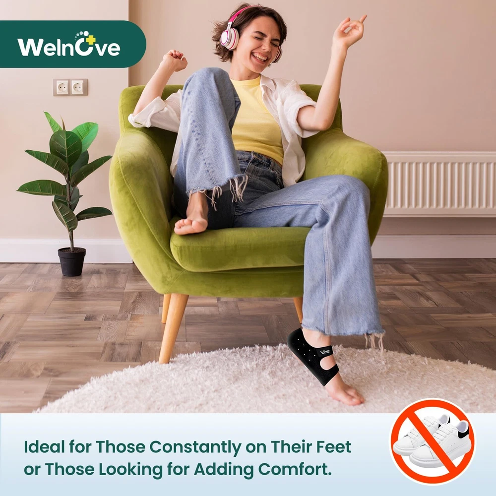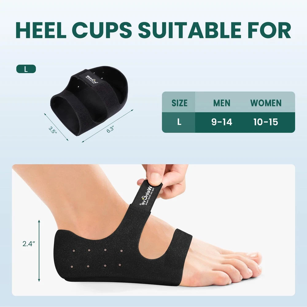 UPGRAGE DESIGN - The upgraded heel protector with "air holes" is more breathable and moisture-wicking, keeping your feet nice and comfort. Made of skin-friendly fabric providing better fit, plantar fasciitis heel cups not easily wear down and it can take the impact off the area, providing persistent cushioning and support. HEEL PAIN RELIEF - Built-in thicker gel, heel cushion cups can effectively absorb impact, provide support and chushion for your feet, reduce pain or discomfort from plantar fasciitis, achilles tendonitis, injured tendon,heel spur, cracked heel pain, stress fractures and swelling. SOFT & COMFORTABLE - These heel cushion pads disperse heel pressure for shock absorption and better comfort. It is an excellent choice for those who work on their feet for long hours, as it can make shoes more comfortable and reduce foot fatigue. The plantar fasciitis heel inserts is especially beneficial for shoes that lack proper cushioning or support. FLEXIBLE & ADJUSTABLE DESIGN - Adjustable elastic band holds securely, heel support cushions are adjustable to fit different sizes of feet, keep your feet snug and comfortable, and keep the gel heel protector pads in place as you walk around.This heel spur relief products suitable for loose shoes, bare feet wearing socks or not wearing socks. PACKAGE INCLUDES - 1 Pair Large size blue heel insert cushion cup for heel pain, would be for both women and men, protect your foot while in physical activities,daily work,or sleep at night. The big heel protectors fit for Women: US Shoe Sizes 10-15, Men: US Shoe Sizes 9-14. ATTENTION - Please be patient with the heel cushions and allow them to mold to your foot to get maximum comfort. The initial 2-5 days may cause slight pressure and discomfort due to arch support adjustment. Start with 3-5 hours daily, gradually increasing until you can wear them all day for a comfortable transition.