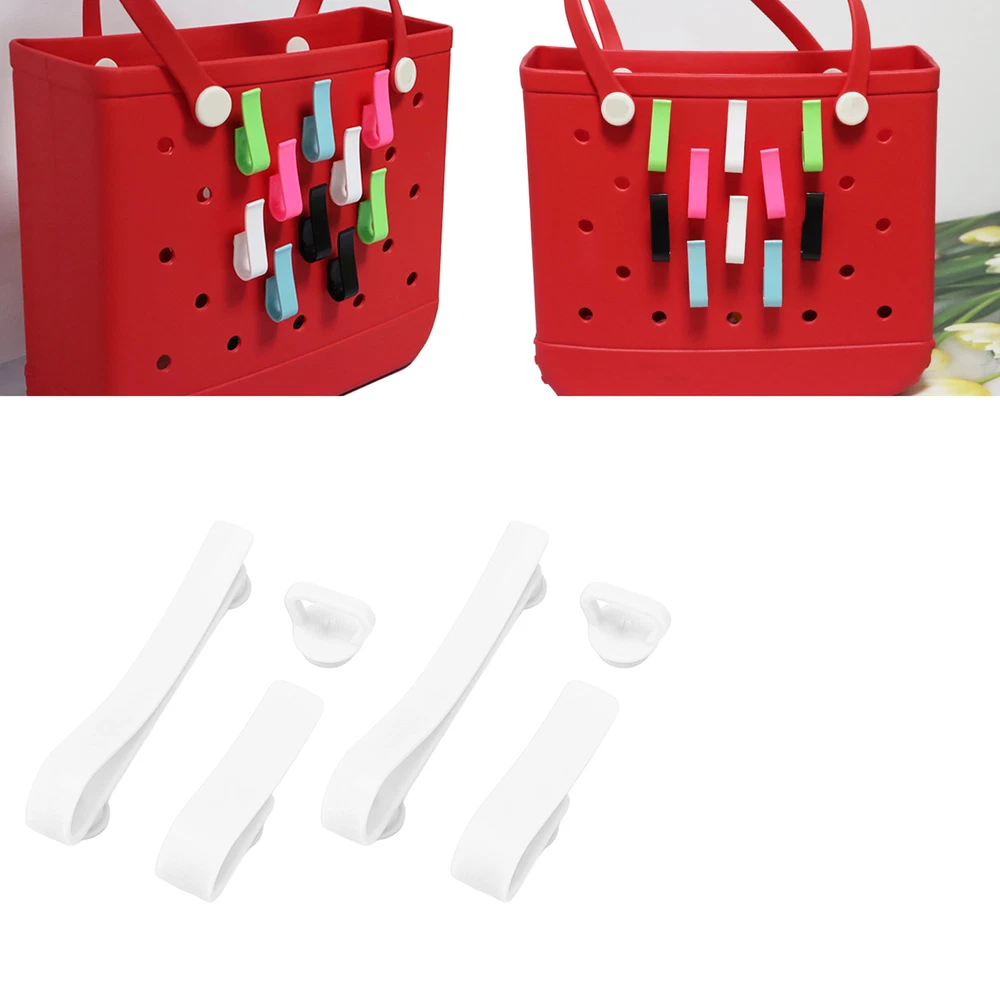 Feature: 1. Showcasing Accessories: These tassel/keychain hooks are perfect for showcasing your tassel accessories or keychain on your bag! Perfect for holding keys and various pendants. 2. Simple Sturdy and : ABS Material: Hooks accessories for bogg bags are made of ABS material, ensuring durability and long lasting performance. 3. Easy Installation: Specially designed for installation inside or outside of rubber beach , ensuring a safe and convenient storage solution. 4. Beautiful and Practical: Vivid colors and patterns add a trendy style to your handbag while keeping it organized on the go. 5. Package Content: 6 piece beach bag accessory set, with 2 large, small, and medium sized accessories each, which can be paired as you please. Specification: Item Type: Hooks Accessories for Bogg Bags Product Material: ABS Weight: Approx. 30g / 1.1oz Package List: 6 x Accessories