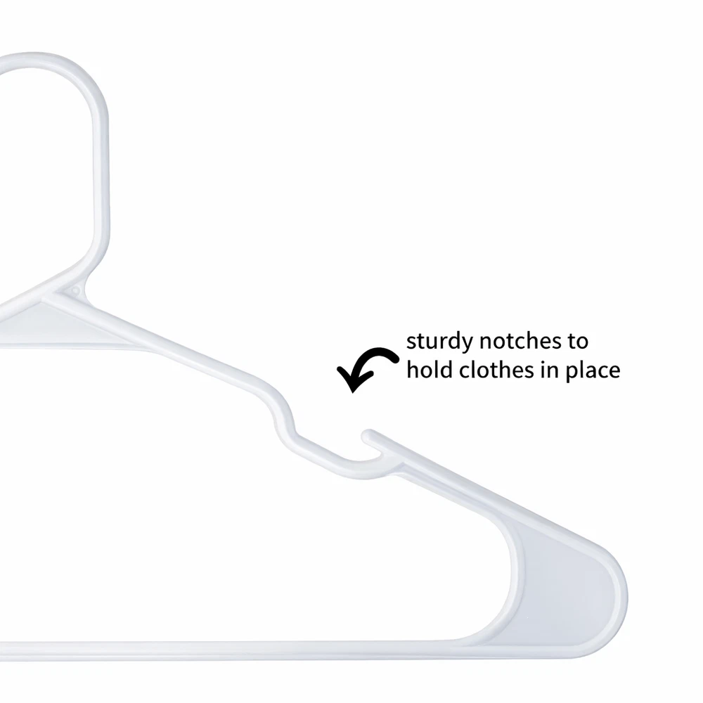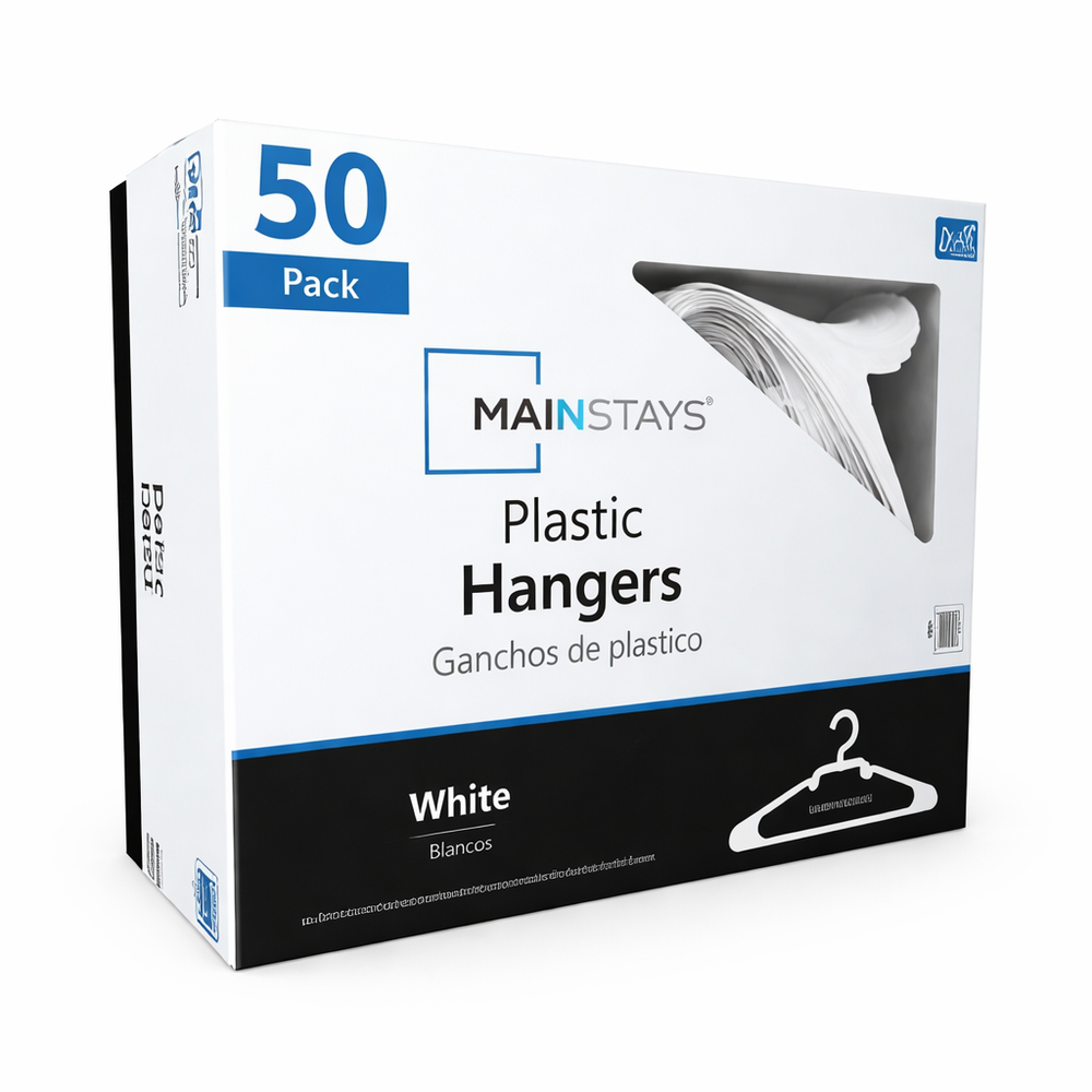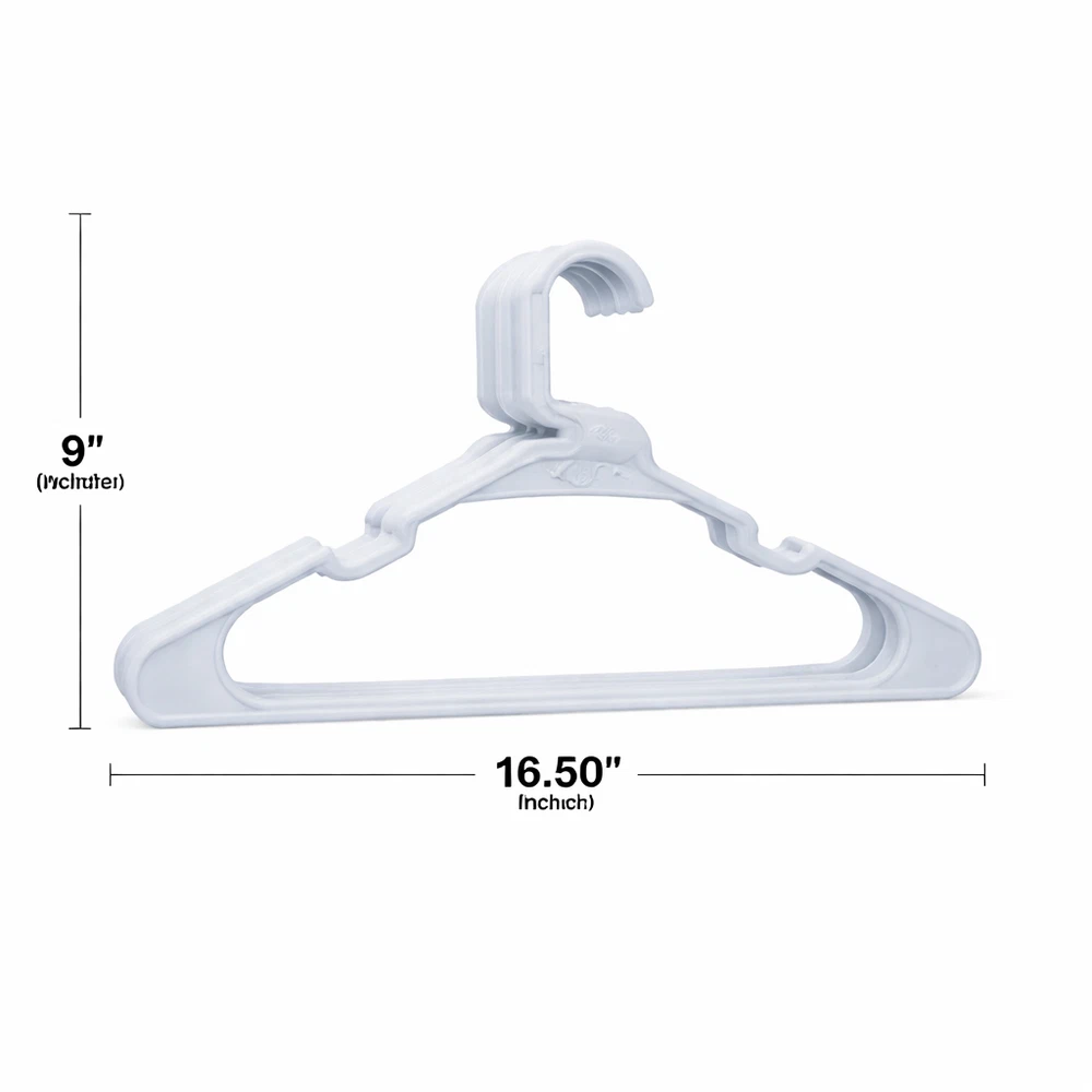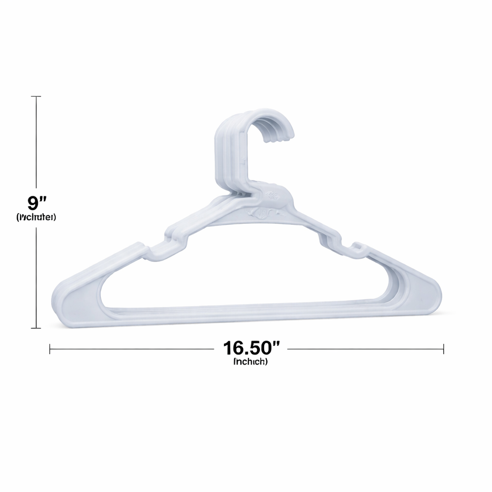 50 Pack Plastic Clothes Hangers Durable Everyday Closet Organizer – Arctic White Product Description Keep your clothing neatly arranged and easy to access with this convenient set of 50 plastic clothes hangers. Designed for everyday use, these hangers help reduce clutter by eliminating the need for folding while maximizing available closet space. Their clean Arctic White finish adds a fresh, organized look to closets, dorm rooms, and laundry areas. Crafted from sturdy polypropylene, these hangers are built to support a variety of garments while maintaining their shape over time. Integrated shoulder notches help keep strappy items securely in place, preventing slipping and keeping clothes off the floor. Key Features Value Pack: Includes 50 plastic hangers, ideal for organizing multiple garments at once Strong & Reliable: Made from 100% polypropylene for dependable everyday use Non-Slip Notches: Built-in shoulder grooves help hold straps and delicate clothing securely Space-Saving Design: Helps maximize closet and wardrobe space by hanging clothes neatly Easy Care: Smooth plastic surface wipes clean easily with a damp cloth Specifications Feature Details Material 100% Polypropylene Color Multi-color Quantity 50 Hangers Design Plastic Hangers with Strap Notches Care Wipe clean with damp cloth Recommended Uses Organizing shirts, t-shirts, blouses, polos, and dress shirts Hanging jackets, sweaters, and lightweight outerwear Closets, dorm rooms, apartments, and laundry rooms Air-drying clothing after washing Suitable for adult and teen clothing storage Package Includes 50 × Plastic Clothes Hangers Additional Information These lightweight yet sturdy hangers provide a simple and effective solution for keeping clothes visible, wrinkle-free, and organized. Ideal for everyday use in busy households.