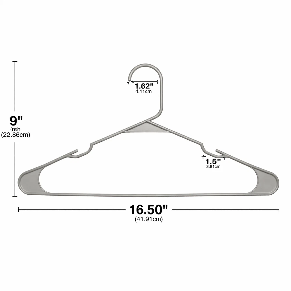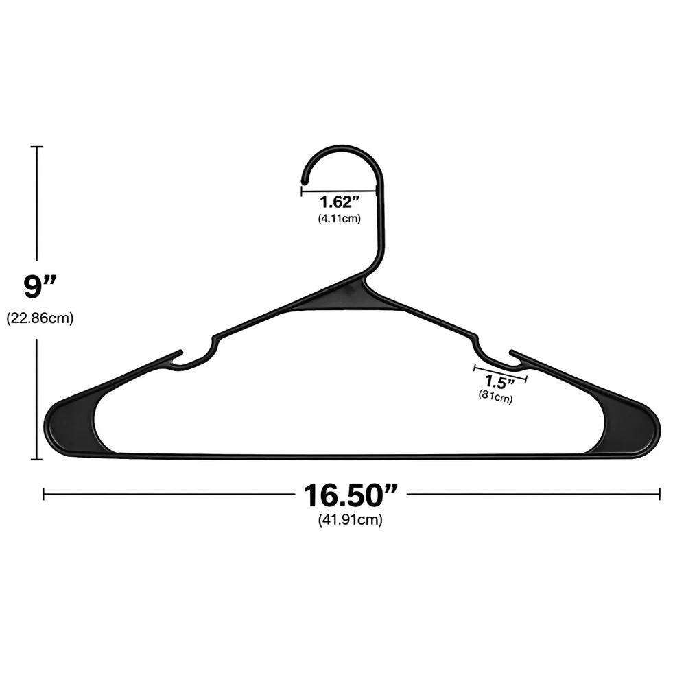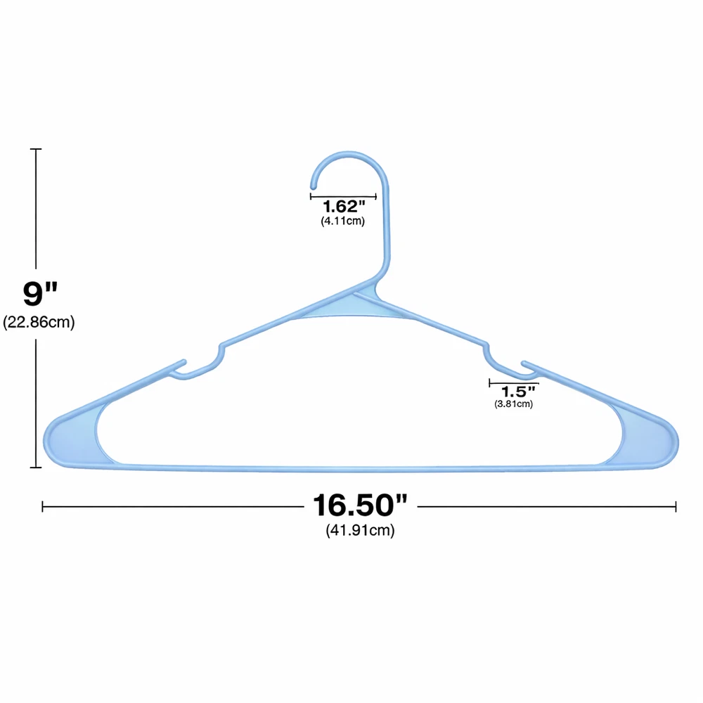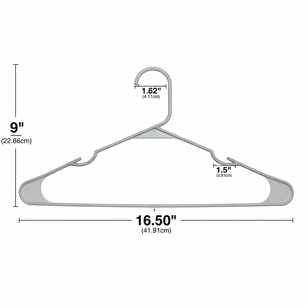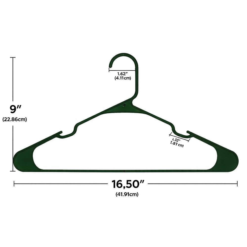 50 Pack Plastic Clothes Hangers Durable Everyday Closet Organizer – Arctic White Product Description Keep your clothing neatly arranged and easy to access with this convenient set of 50 plastic clothes hangers. Designed for everyday use, these hangers help reduce clutter by eliminating the need for folding while maximizing available closet space. Their clean Arctic White finish adds a fresh, organized look to closets, dorm rooms, and laundry areas. Crafted from sturdy polypropylene, these hangers are built to support a variety of garments while maintaining their shape over time. Integrated shoulder notches help keep strappy items securely in place, preventing slipping and keeping clothes off the floor. Key Features Value Pack: Includes 50 plastic hangers, ideal for organizing multiple garments at once Strong & Reliable: Made from 100% polypropylene for dependable everyday use Non-Slip Notches: Built-in shoulder grooves help hold straps and delicate clothing securely Space-Saving Design: Helps maximize closet and wardrobe space by hanging clothes neatly Easy Care: Smooth plastic surface wipes clean easily with a damp cloth Specifications Feature Details Material 100% Polypropylene Color Multi-color Quantity 50 Hangers Design Plastic Hangers with Strap Notches Care Wipe clean with damp cloth Recommended Uses Organizing shirts, t-shirts, blouses, polos, and dress shirts Hanging jackets, sweaters, and lightweight outerwear Closets, dorm rooms, apartments, and laundry rooms Air-drying clothing after washing Suitable for adult and teen clothing storage Package Includes 50 × Plastic Clothes Hangers Additional Information These lightweight yet sturdy hangers provide a simple and effective solution for keeping clothes visible, wrinkle-free, and organized. Ideal for everyday use in busy households.