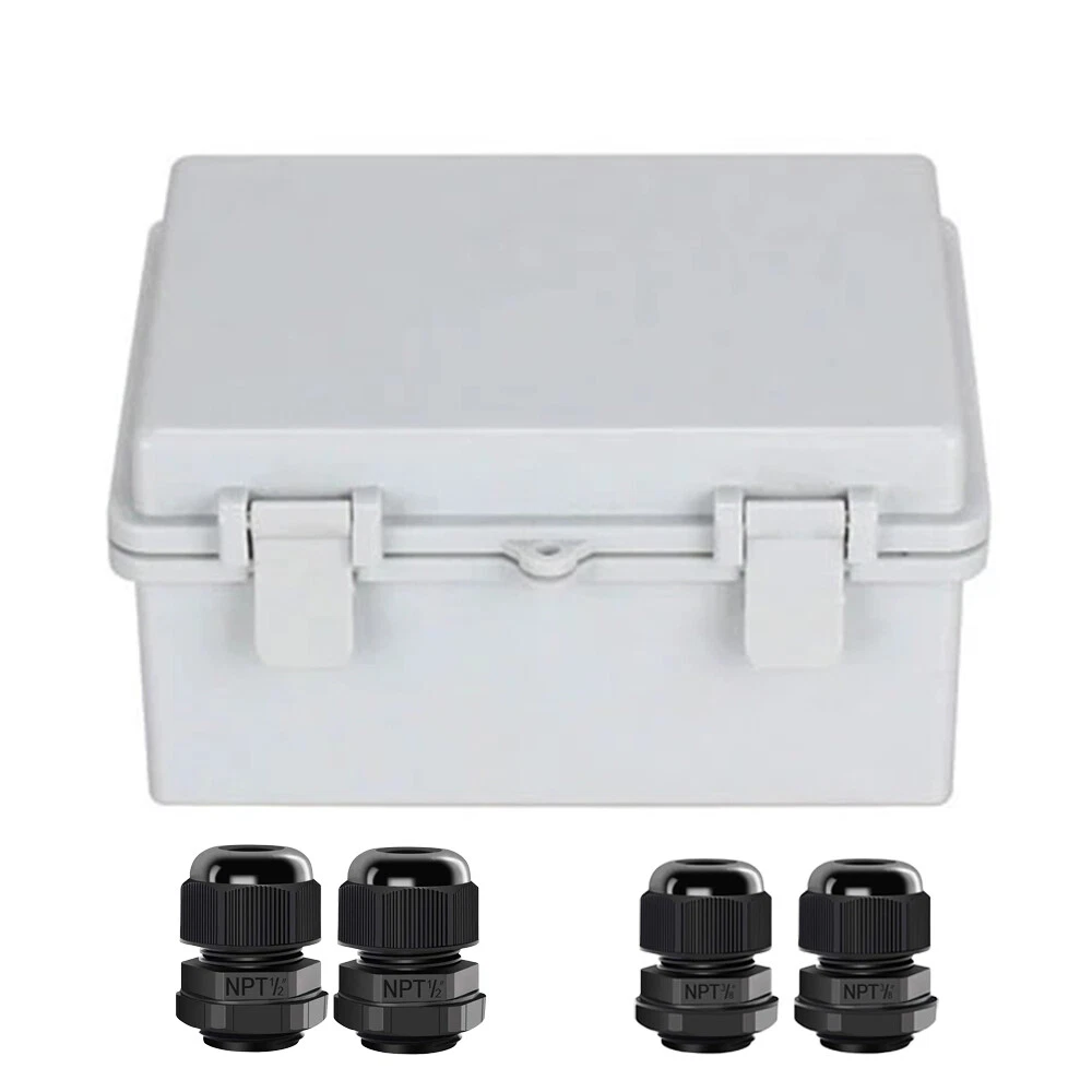 Plastic Electrical Enclosure Box Waterproof Outdoor Project Case w/ Cable Glands