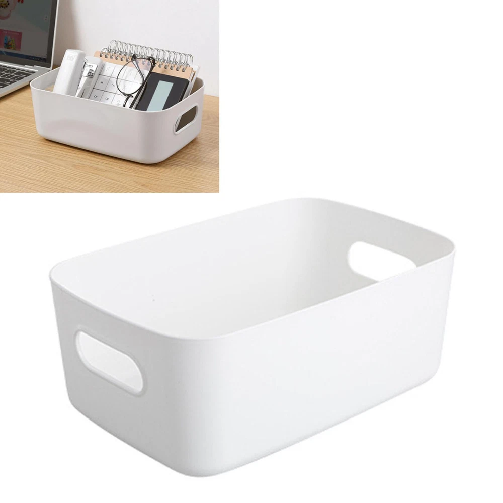 Feature: 1. Multifunctional Design: The plastic storage basket is designed to organize various items, such as cosmetics, kitchen supplies, snacks, and more. It helps keep your space tidy by providing a dedicated storage solution. 2. Eco Friendly Material: Made with premium plastic, the storage basket is environmentally friendly and safety to use. It is easy to clean, ensuring hygienic storage of your belongings. 3. Stylish Appearance: With its minimalist design, the storage basket can seamlessly blend with any interior style, enhancing the overall cleanliness and aesthetics of your home. It adds a touch of elegance to your storage solutions. 4. Large Capacity: The storage basket offers ample space to accommodate a variety of items, allowing you to make the most of your available space. It effectively maximizes storage efficiency and helps you stay organized. 5. Convenient to Use: Equipped with handles, the storage basket is easy to carry and move around. It provides added convenience when it comes to transportation and storage of items, giving you convenient experience. Specification: Item Type: Plastic Storage Basket Material: Plastic Package List: 1 x Plastic Storage Basket
