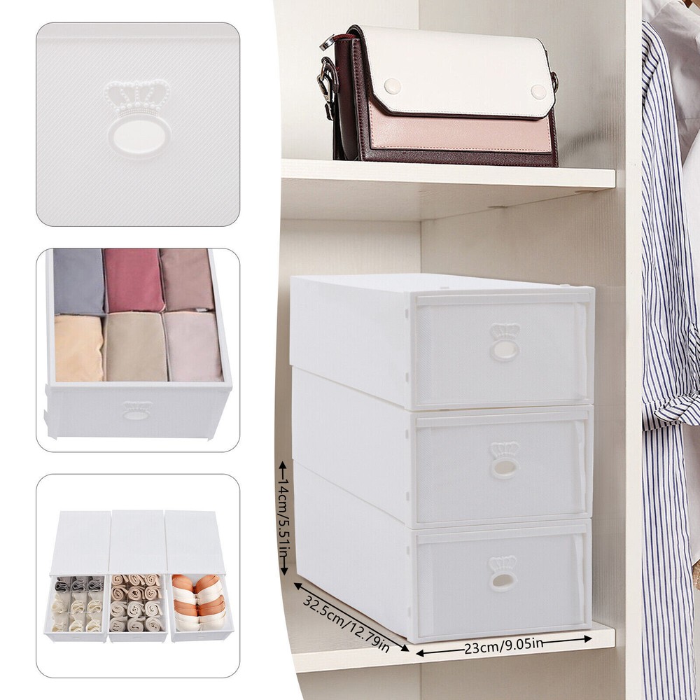 Description Beautiful Living Starts with Organized Storage. This Drawer Storage Box Features a Three-box Splicing Design, with More Space at Your Disposal. It Features a Drawer Design with a Smooth Pull-out. the Clear Markers Allow You to Find Underwear, Socks, and Panties Faster. the Thoughtful Design Gives You a Better Storage Experience. Package Included 3*Drawer Storage Boxes 1*Classification Marker Specification Color: White Material: Pp+Abs Package Size: 46*38*5.5cm/18.11*14.96*2.17'' Single Box Size: 23*32.5*14cm/9.05*12.79*5.51'' Gross Weight: 1.1kg/2.43lbs Net Weight: 0.8kg/1.76lbs Plastic Storage Cube Organizer Folding Closet Stackable Box 3 Drawer 3 Pack Description Description Beautiful Living Starts with Organized Storage. This Drawer Storage Box Features a Three-box Splicing Design, with More Space at Your Disposal. It Features a Drawer Design with a Smooth Pull-out. the Clear Markers Allow You to Find Underwear, Socks, and Panties Faster. the Thoughtful Design Gives You a Better Storage Experience. Package Included 3*Drawer Storage Boxes 1*Classification Marker Key Features Drawer Type : It Uses a Drawer Design and Smooth Pulling, Which Is More Convenient for You to Take. Large Capacity : It Consists of Three Storage Boxes and Two of Them Have Multiple Compartmentalized Designs. It Can Meet Almost All Your Personal Belongings Storage Needs. High Stability : Three Boxes Can Be Overlapped Together. the Precise Mounting Design Makes Them Just Overlapping and Not Easy to Tip over. Space Saving : Three Boxes with the Regular Rectangular Shape Can Fit Well with the Corners of Your Walls and Closets, Which Is Space-saving. Safe and Secure : It Is Made of High-quality Safe Pp and Abs Material, so It Is Odorless. It Is Safe for Even Babies or Sensitive People to Use. Compartmentalized Design : You Can Put Underwear, Socks and Underwear in a Separate Special Box, Which Will Not Cause Cross-contamination. the Compartmentalized Design Is More Hygienic and More Convenient to Find. Thoughtful Design : the Non-transparent Design Effectively Avoids Embarrassment. Besides, the Classification Marker Can Make the Items in the Box Clear at a Glance and Easy to Find. Easy to Use : the Three Storage Boxes Can Be Assembled at Will. You Can Put the Three Boxes Together by Simply Pressing the Protruding Blocks into the Corresponding Slots. Then You Can Put on the Classification Marker to Enjoy the Joy of Storage Immediately. Easy to Clean : It Is Made of Stain-resistant Pp and Abs Material. When Its Surface Is Stained, You Only Need to Rinse It with Water to Make It Look New. Specification Color: White Material: Pp+Abs Package Size: 46*38*5.5cm/18.11*14.96*2.17'' Single Box Size: 23*32.5*14cm/9.05*12.79*5.51'' Gross Weight: 1.1kg/2.43lbs Net Weight: 0.8kg/1.76lbs How to Assemble 1.It Is Very Easy to Assemble. You Can Put the Three Boxes Together by Simply Pressing the Protruding Blocks into the Corresponding Slots. 2.If You Have Any Other Questions, Please Feel Free to Contact Us. We Will Do Our Best to Help You. Details Classification Marker: the Package Is Equipped with Different Classification Markers. Attaching Them to the Outside of the Box Makes It Easy to Find the Contents at a Glance. Small Compartments: Both Boxes Have Small Compartments to Bring More Neat Storage and Easier Pickup. Stylish Frame: It Uses the Faux Alabaster Marble Frame, Which Is Smooth, Fuss-free, Instantly Upgrades the Entire Box, and Better Reflects the Stylishness of the Room. Application It Is Suitable for Underwear, Socks, Panties, and some Other Small Items. Notes Please Allow the Slight Color Difference Caused by the Shooting Light and 1-3cm Error Due to Manual Measurement, and Make Sure You Do Not Mind Before You Place the Order. Payment Delivery details Terms of sales About us Contact us Payment We accept ebay payment 。 Fees such as import duties, taxes are not included in the item price or shipping costs. These charges are the buyer's responsibility. Delivery details Shipping: 2-9 working days to: USA Terms of sales We maintain high standards of excellence and strive for hundred percent customer satisfaction. Feedback is very important to us. We hope that you contact us immediately before you give neutral or negative feedback, so that we can address your concerns. It is impossible to address issues if we do not know about them! About us Your satis faction is our ultimate goal. We work hard to earn your trust and future business. Our certified technicians have tested each item before shipping. The unit comes with 1 year limited warranty on all manufacturing defects. a) If you receive a defective item, you may return it or ask for a discount. Please contact us within 14 days after you receive the package. b) What you returned must be intact and in its original packaging as re? u. Customer is responsible for shipping costs of the returned item. c) We will cover the cost of shipping back t with the shipping rate indicated in the registration page. We will send you a new unit or refund the full payment you paid. Thank you. Contact us Business Hour Business Hour: Monday To Friday: 8:30 AM to 5:00 PM (Beijing China time) Due to time zones, our reply to your questions may not be immediately. But within above working time, we will reply your email within 24 hours. If it's non-workdays, please kindly be patient and wait till Monday. Please contact us with ebay message. Please feel free to contact us if you have any questions. Monday To Friday: 8:30 AM to 5:00 PM (Beijing China time) Due to time zones, our reply to your questions may not be immediately. But within above working time, we will reply your email within 24 hours. If it's non-workdays, please kindly be patient and wait till Monday. Please contact us with ebay message. Please feel free to contact us if you have any questions.