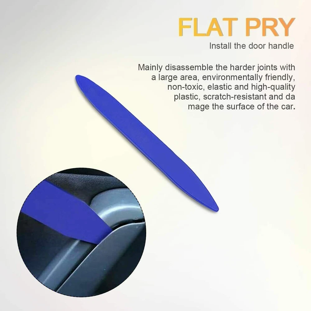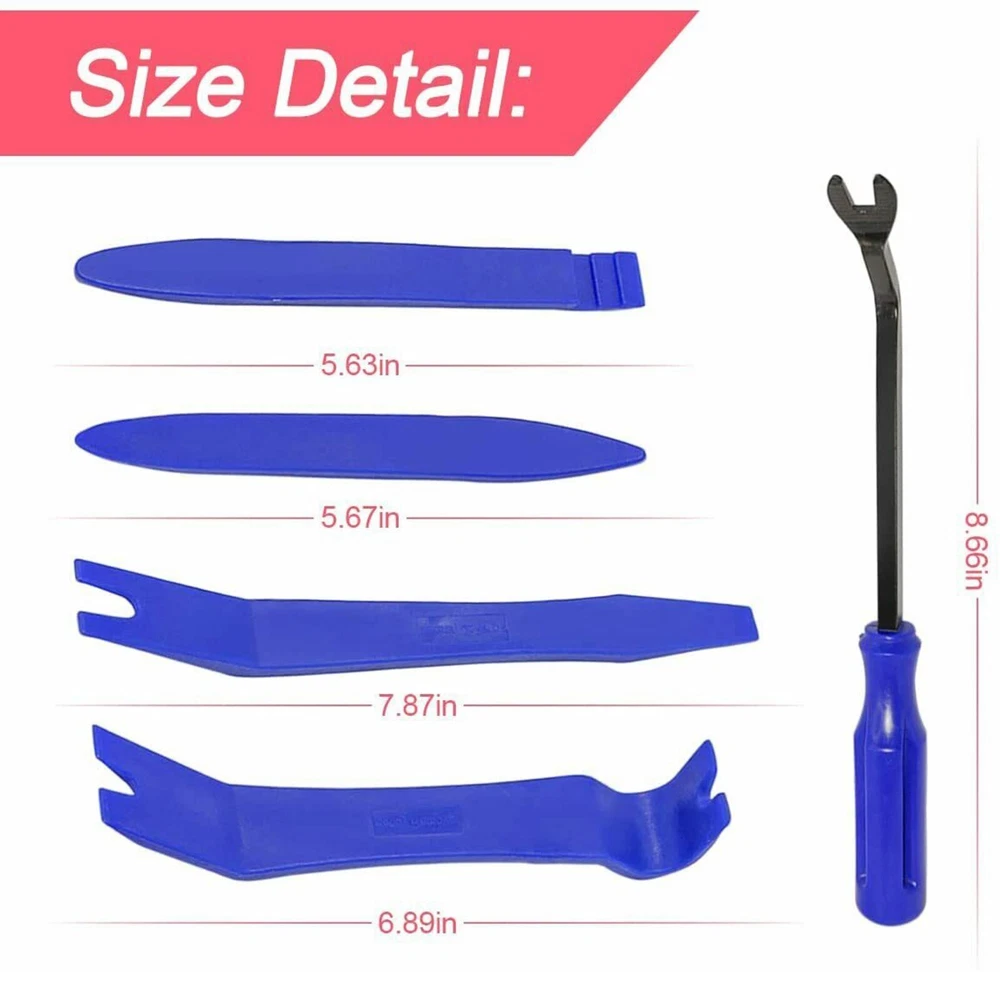 Welcome to Kumbala eBay Store Description: - 100% brand new and high quality guaranteed - 1 set car panel removal tool (include 5pcs) - Easily and safely to remove radio panel, trim, molding, door panels, and dashboards - Great for automotive snap on trim panel and molding removal - Also works great for furniture repair soft and hard woods, antiques restorations,upholstery, leather work etc. - Reduce the concave and protruding scars left by using screw knife or other tools - It could reduce the abrasion possibility of car inner decorating -The tools are designed to fit any car model - High quality rugged durable plastic construction prevents marring - Work on interior and exterior trim, wide edge remover, narrow edge remover, pull-type remover, handle remover or upholstery clip remover - It has a high elasticity and elastic recovery rate Included in this package: - 5PCS PRY KIT Warranty & Customer Service : 30 days money back 60 days seller's guarantee, 24 Hours friendly customer service!