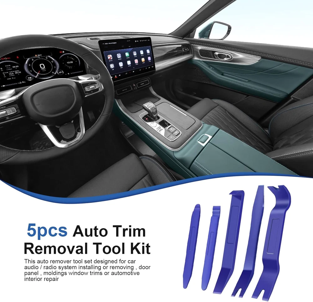 No Marring and No Scratch - The sharp and clean edge of the trim removal tool ensures the good effect of using and curved, Ultra-thin clip head can reach the confined areas without pry off the trim. Easily install or remove car accessories without damaging the car. ERGONOMIC DESIGN - The trim removal tool is ergonomic design with super lightweight and easy handheld features. The anti-slip and thick handle can prevent it from falling off from your hand when in use, allows you to use with less effort and improve efficiency. - HIGH QUALITY - Made of super durable plastic nylon material with high level craftsmanship, non-toxic and eco-friendly designed, sturdy enough for long-time usage. Super lightweight and portable, you can store anywhere or carry in your bag when you're not in use. - UNIVERSAL CAR PANEL DOOR TRIM REMOVAL SET - Suitable for disassembly and assembly of automotive or marine parts such as fasteners, door panels, vehicle dash radio, instrument panels, clips, moldings, base plates, etc. - PACKAGE INCLUDES - There are 5pcs different kinds of trim tools, perfect for professionals and beginners doing any care modifications. Buyer Note: If you are satisfied with our service, we appreciate you leaving us a positive feedback and 5 star rating review! Your opinion is important to the success of our business. If you are not satisfied with the product or have not received the product for more than 35 days, please contact us to resolve, we will do our best to solve. We are sure to come up with a satisfactory solution. Please contact us first before leaving cold feedback or good feedback of 1-3 stars and opening the case. We'll do our best to solve your problem. Because we believe that everything can be solved through communication. Thank you very much!