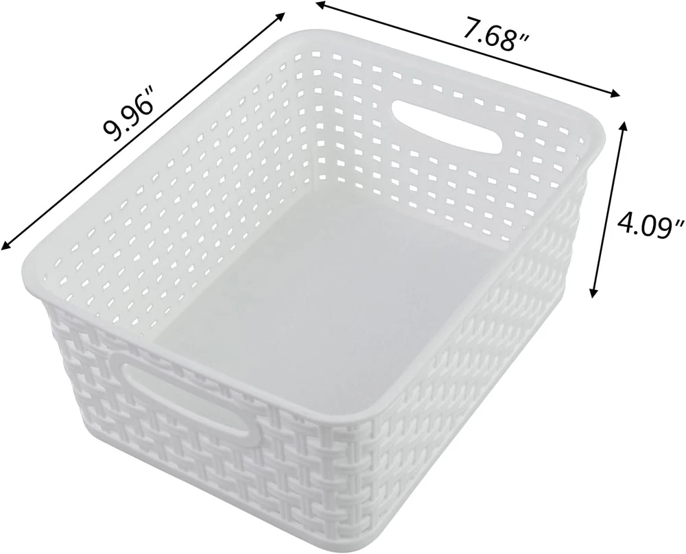 Store New Arrivals Add to Favorite View Feedback Contact Plastic White Storage Baskets, 6 Pack Small Organizer Baskets Box Description Closure Type Clips Style Modern Finish Plastic With Lid No Color White Finish Type Plastic Product Dimensions 9.84 x 7.48 x 3.93 inches Material Plastic Country of Origin China Batteries Required? No Room Type Kitchen Item Weight 2.14 pounds Handle Material Plastic Batteries Included? No Recommended Uses For Product Storage Shape Rectangular Special Features Weave design for ventilation Special Feature Weave design for ventilation Number of Pieces 6 Size: 9.84" x 7.55" x 4.09" Weave design is helpful for ventilation (rapid drying) Perfect size for the kitchen cupboard, office work desktop, bedroom, bathroom, etc. High quality PP material, durable and made to last Can be used to organize snacks, building blocks, condiments, pens, clips or other small things ABOUT US We offer the best prices around on high quality products. Our E-store includes media such as books, movies, music and games while offering electronics, toys, sporting apparel, clothing, tools, general home, garden items and more. SHIPPING We are always working hard to ensure your package arrives as soon as possible. Please understand that some factors like weather, high postal traffic, and the performance of shipping companies are outside of our control. We offer free shipping to the lower 48 states and ship within 2 business days of payment, usually sooner. We do not accept P.O. Boxes. Please provide a physical address. For shipping outside of the continental USA, we only use eBay's Global Shipping Program.The item is shipped to KY and then sent to the rest of the world. International customers are responsible for all duties and taxes. Continue to check out in order to calculate costs for shipping the item to your country. Messages regarding eBay's Global Shipping Program MUST be directed at eBay EXCLUSIVELY. RETURNS We offer a 30-Day Return Policy on items which you are not completely satisfied with. You have the option for a full-refund or an exchange of the item. No returns are available on items shipped outside of the USA. PAYMENT We accept PayPal. CONTACT US This page content is yet to come Please ad us to your favorite seller and visit again later Thank You CUSTOMER SATISFACTION We try our very best to make sure every customer is completely satisfied. If there's a problem, message us! We're happy to help. WE ACCEPT Copyright © 2021 AutoDS. | All Rights Reserved