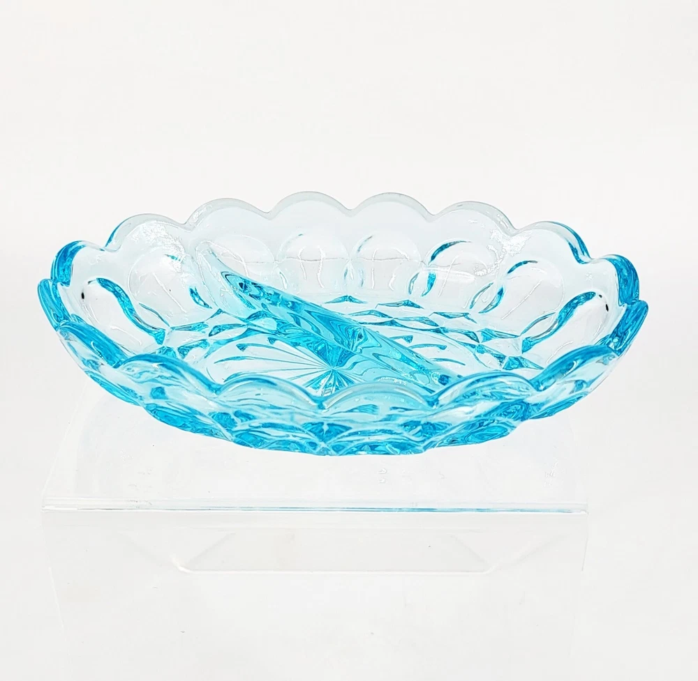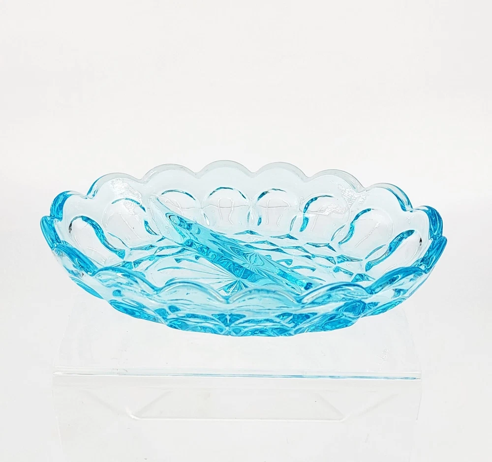 BRAND: Anchor Hocking Vintage Divided Dish, Made in the USA. Vintage 1960s. COLORWAY: Light Blue SIZE: Approximately 1.5" Tall, 5" Wide and 7" Long. CONDTION: Excellent Condition with no signs of chips or cracks. Please see my photos for exact Details. Thank you for stopping by today and have a wonderful week.