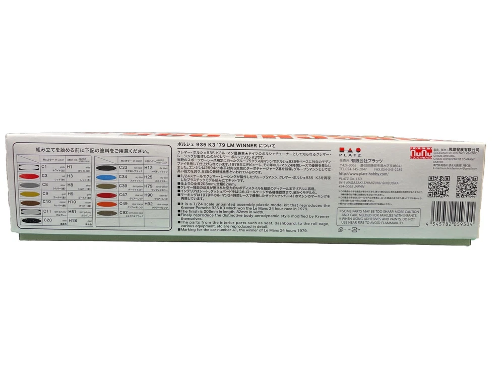 This Platz 1/24 Porsche 935K3 '79 LM Winner model kit is a must-have for any automotive enthusiast or collector. The kit includes a photo-etched metal sheet and all the necessary parts to build a detailed replica of the iconic race car. With a scale of 1:24 and made of high-quality plastic materials, this model kit is perfect for display or as a gift for a fellow Porsche fan. The kit features intricate details and design elements that accurately capture the essence of the legendary race car. Whether you're a seasoned model kit builder or a beginner, this Platz 1/24 Porsche 935K3 '79 LM Winner model kit is sure to impress.