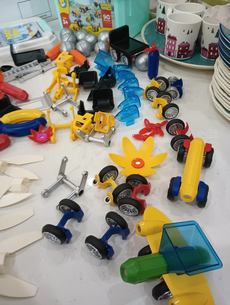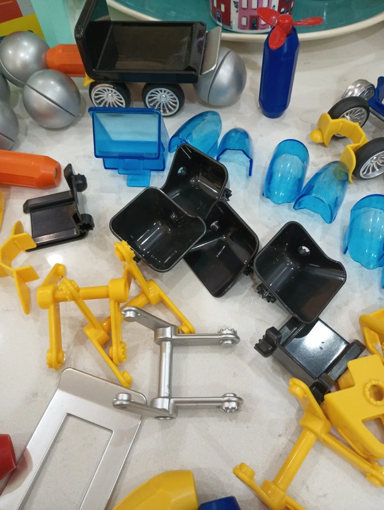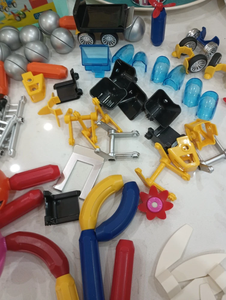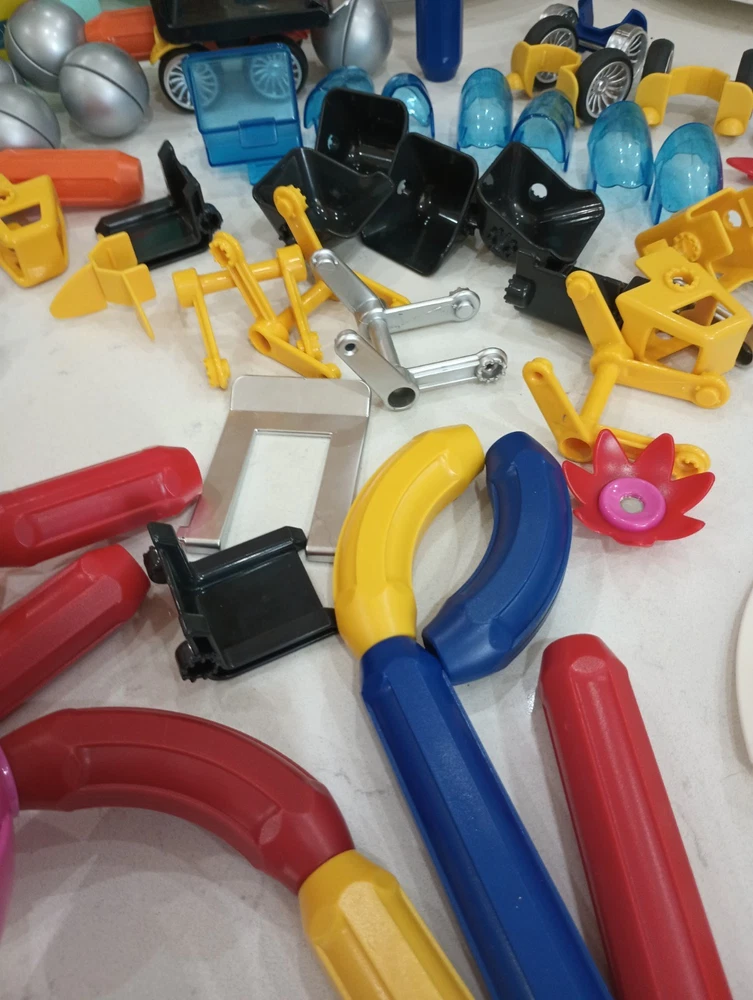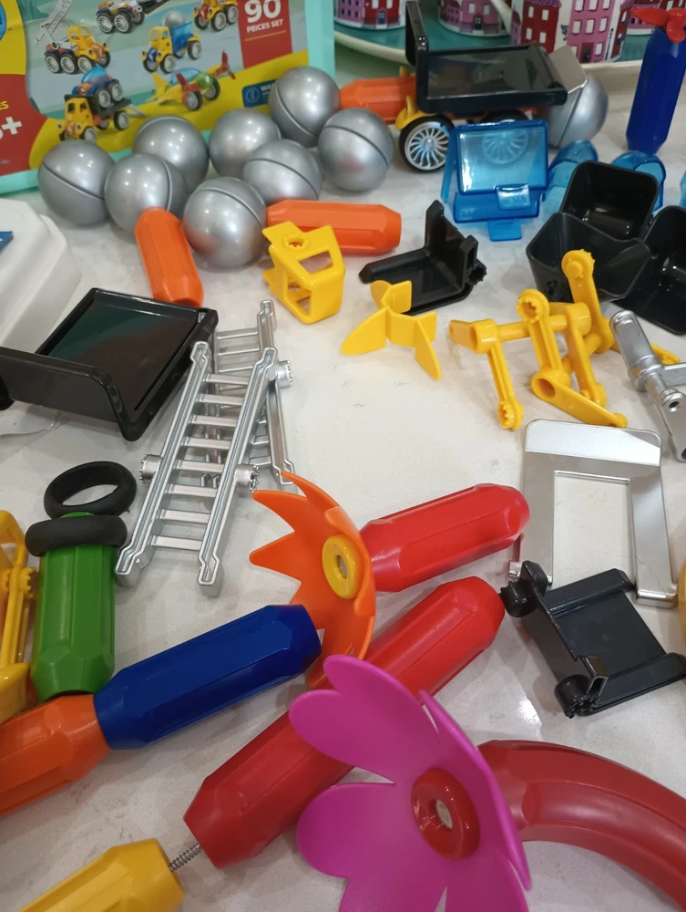 BIG 90 pieces BRAINY MAGS by Play Brainy is loaded with plastic/magnetic pieces that can be made into as many things as a brain can conceive! Used, in excellent condition, with the Play Book that shows pictures of possible things to create, this comes in a plastic locking tub with a carry handle. Wonderful bucket of creative play for all ages, recommended for 3 and up to prevent choking. This can make a great gift, a bucket of fun for your own home, to pack up for travel, and special time for all little people and all ages! Shipping is INCLUDED in the price. Discounted to find the right person or people who appreciate a big 90 pieces of brainy mags! I have 100% excellent feedback, ship daily, and will be happy to get these out to you immediately. AL20