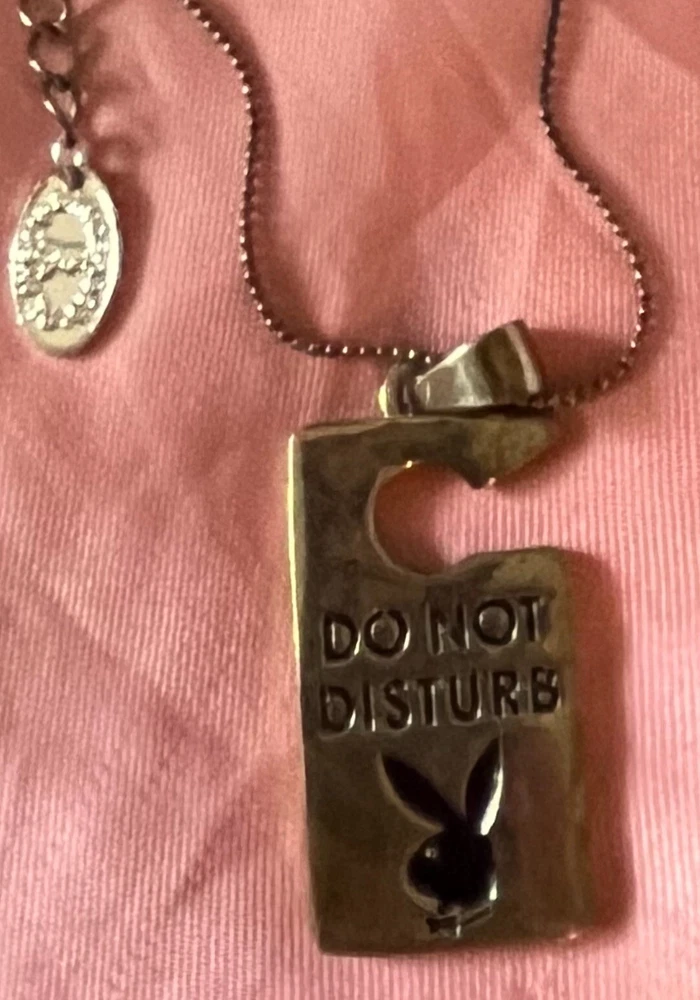 RARE. Vintage Y2K Playboy Golsdtone Do No Disturb pendant necklace as seen in Girls Bext Door on the Las Vegas Kendras 21st Birthday Episode Add a touch of luxury to your outfit with this stunning Playboy Do Not Disturb Pendant. Crafted with the finest materials, this pendant exudes elegance and style. The pendant features the iconic Playboy brand, making it the perfect accessory for any fashion-conscious individual. Whether you're dressing up for a special occasion or adding a touch of sophistication to your everyday look, this pendant is sure to turn heads. It is the perfect addition to any jewelry collection and makes a great gift for a loved one. Get your hands on this exquisite Playboy Do Not Disturb Pendant today and elevate your style game!