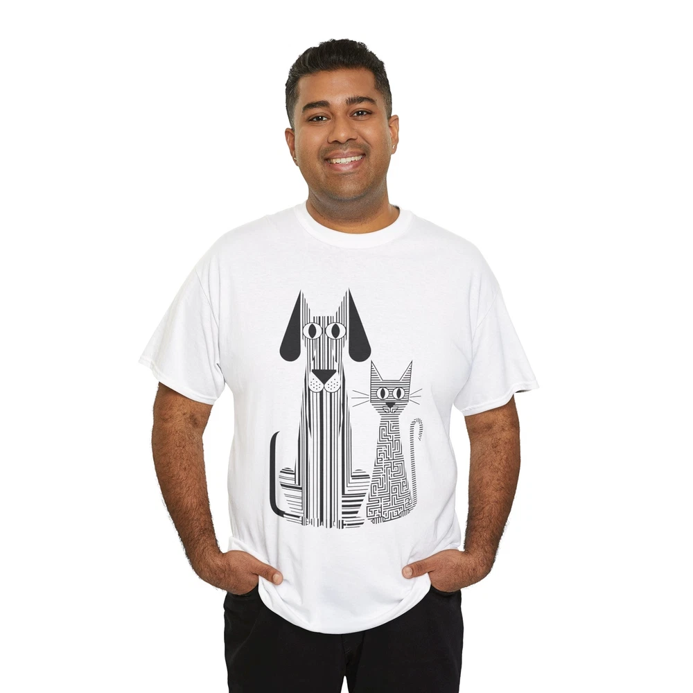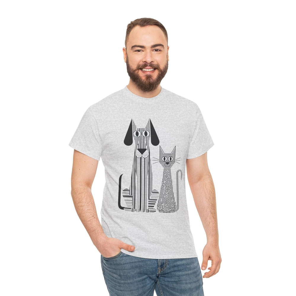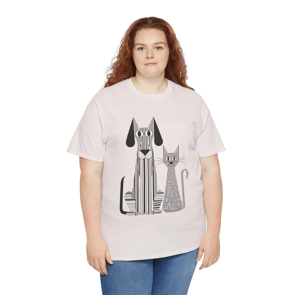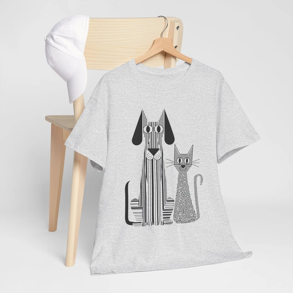 Introducing our stylish and comfortable Unisex Heavy Cotton Tee, perfect for anyone who loves to express their personality through fashion. Featuring a fun and quirky design of a playful dog and cat, this tee captures a lighthearted vibe that can brighten any day. Made for both casual outings and semi-formal gatherings, it’s a versatile addition to any wardrobe. Ideal for animal lovers and those seeking a unique, artistic flair, this tee makes a great gift for birthdays, holidays, or just because! Dive into comfort and style while celebrating your love for pets, and let this tee bring smiles wherever you go! Product features - Durable shoulder tape for added stability - Seamless construction for better fit and reduced waste - Elastic ribbed collar retains shape - Soft, smooth fabric perfect for vibrant printing - Ethically sourced 100% US cotton Care instructions - Non-chlorine: bleach as needed - Do not iron - Do not dryclean - Machine wash: cold (max 30C or 90F) - Tumble dry: low heat