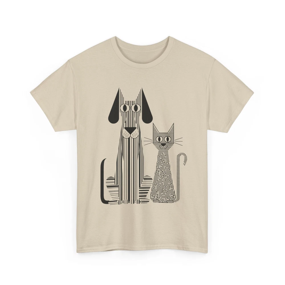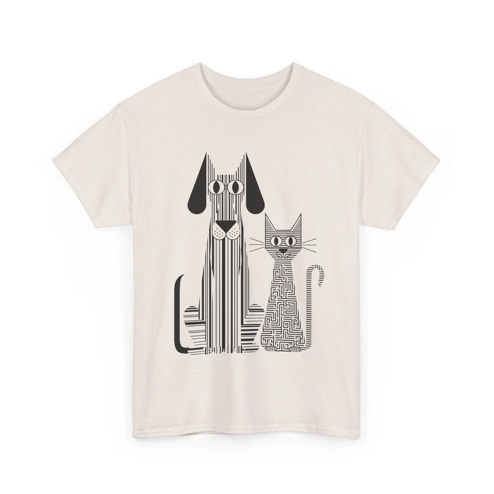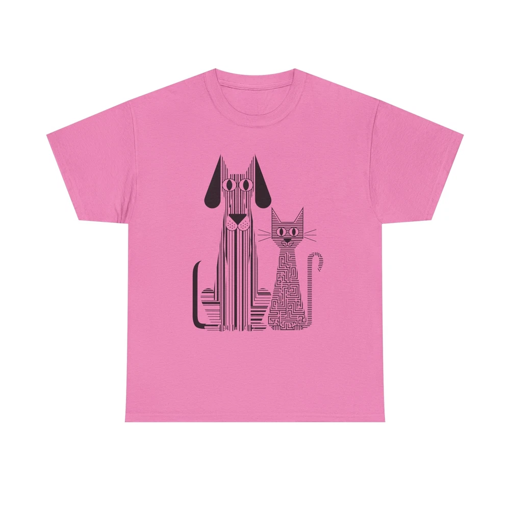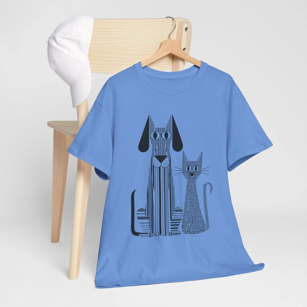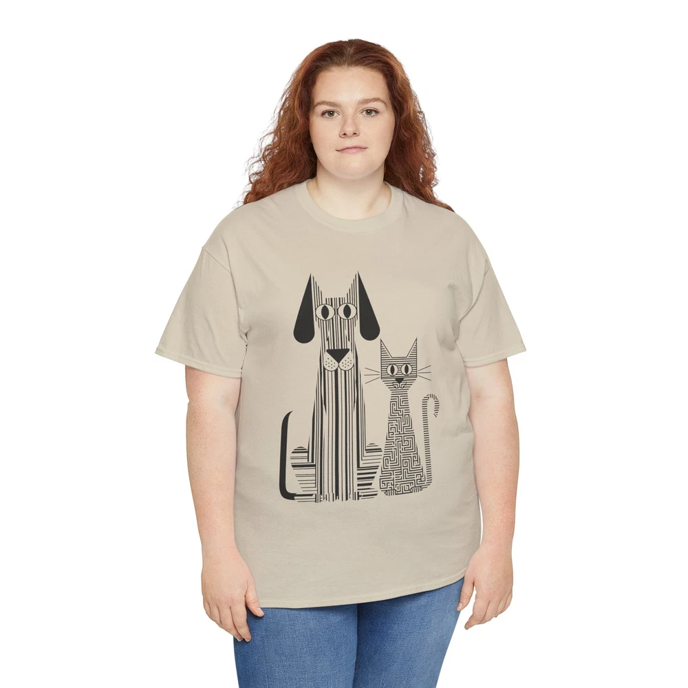 Introducing our stylish and comfortable Unisex Heavy Cotton Tee, perfect for anyone who loves to express their personality through fashion. Featuring a fun and quirky design of a playful dog and cat, this tee captures a lighthearted vibe that can brighten any day. Made for both casual outings and semi-formal gatherings, it’s a versatile addition to any wardrobe. Ideal for animal lovers and those seeking a unique, artistic flair, this tee makes a great gift for birthdays, holidays, or just because! Dive into comfort and style while celebrating your love for pets, and let this tee bring smiles wherever you go! Product features - Durable shoulder tape for added stability - Seamless construction for better fit and reduced waste - Elastic ribbed collar retains shape - Soft, smooth fabric perfect for vibrant printing - Ethically sourced 100% US cotton Care instructions - Non-chlorine: bleach as needed - Do not iron - Do not dryclean - Machine wash: cold (max 30C or 90F) - Tumble dry: low heat
