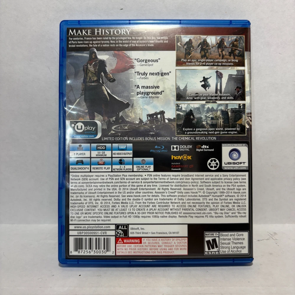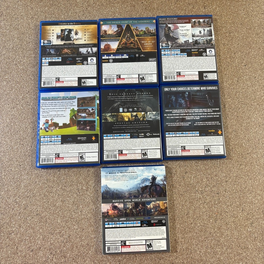 PS4 Playstation 4 Gaming "You Choose" see drop down menu #1 Minecraft Playstation 4 Edition Rated E No Manual #2 The Elder Scrolls V SKYRIM Special Edition w/Map Rated M w/Manual #3 UNTIL DAWN Rated M No Manual #4 Assassin's Creed Syndicate Gold Edition Rated M No Manual #5 Assassin's Creed Origins Rated M No Manual #6 Assassin's Creed Unity Limited EditionRated M No Manual #7 The Witcher Wild Hunt Rated M with Book and CD #8 NO GAME Dragon Age INQUISITION CASE ONLY For inventory = Alaska Shelf #1 Wooden Box