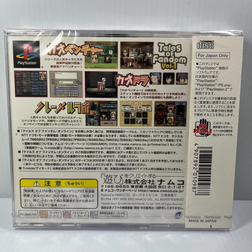 Item Title Playstation Soft Tales Of Fandom Vol.1 10-8 LImited Edition Rare Item Collector Payment Supports managed payments Please pay within 5 days after auction is finished. About Us We are located in Japan. It's our pleasure to make you happy by proposing our recommend item. If you have any questions or request about items, please feel free to ask us. International Buyers - Please Note: -Import duties, taxes, and charges are not included in the item price or shipping charges. These charges are the buyer's responsibility. -Please check with your country's customs office to determine what these additional costs will be prior to bidding/buying. -These charges are normally collected by the delivering freight (shipping) company or when you pick the item up - do not confuse them for additional shipping charges. -We do not mark merchandise values below value or mark items as - gifts - The US and International government regulations prohibit such behavior. Thank you for your understanding.