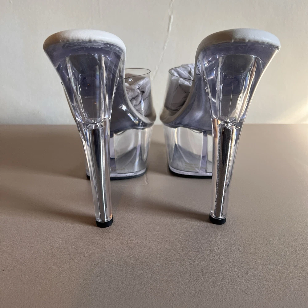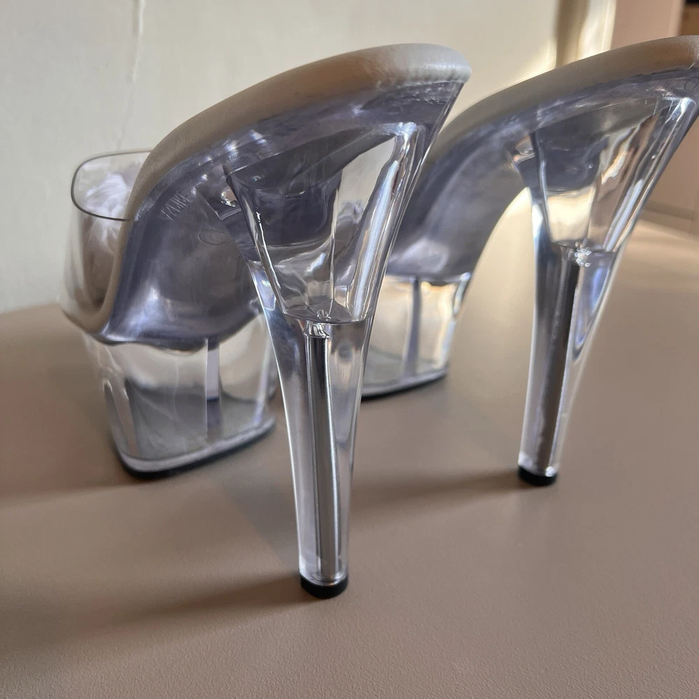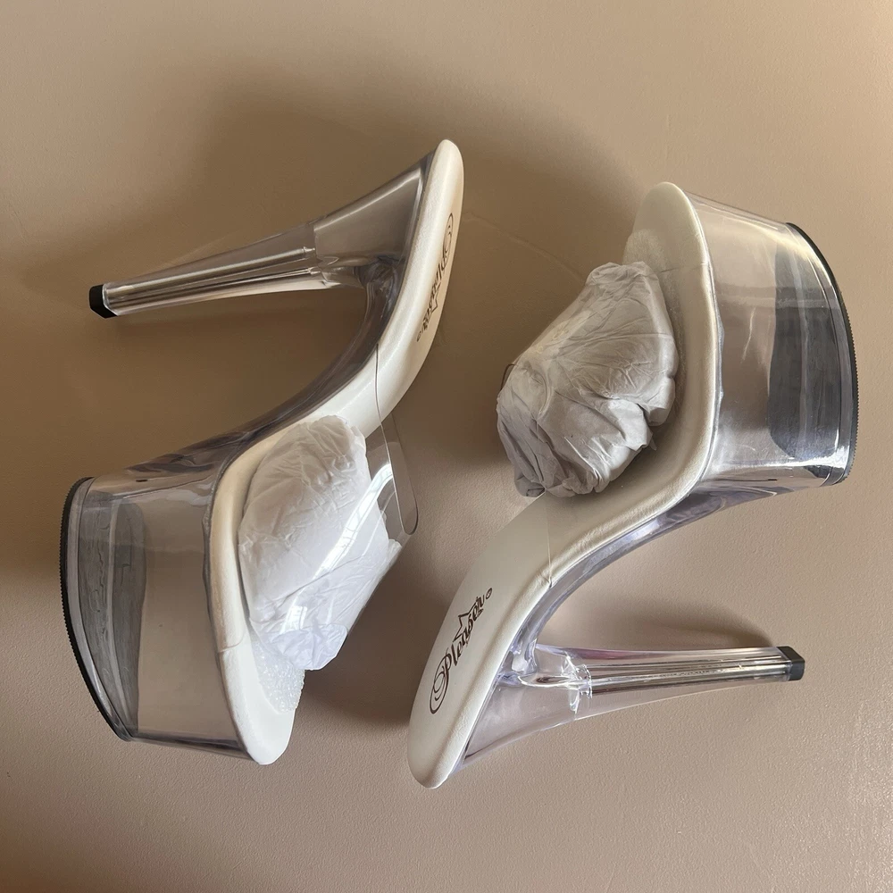 6" Heel 2 1/4" Platform Vegan Friendly Slide Discover the allure of the Aspire-601 slides, where fashion meets function in an elegant synthesis. With a 6-inch heel and a 2 1/4-inch platform, these slides offer an elevated stance, flawlessly blending drama and wearability. The vegan leather insole caters to those who value ethical fashion choices, providing a touch of luxury with every wear. The clear design exudes modernity, making these slides a versatile piece for any occasion, from special events to daily glamour. Experience the blend of style and comfort with the Aspire-601.