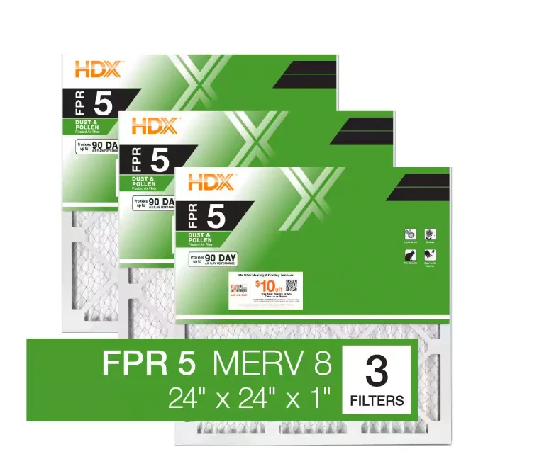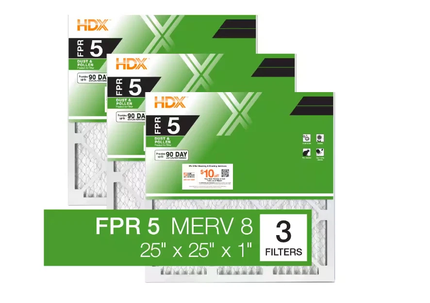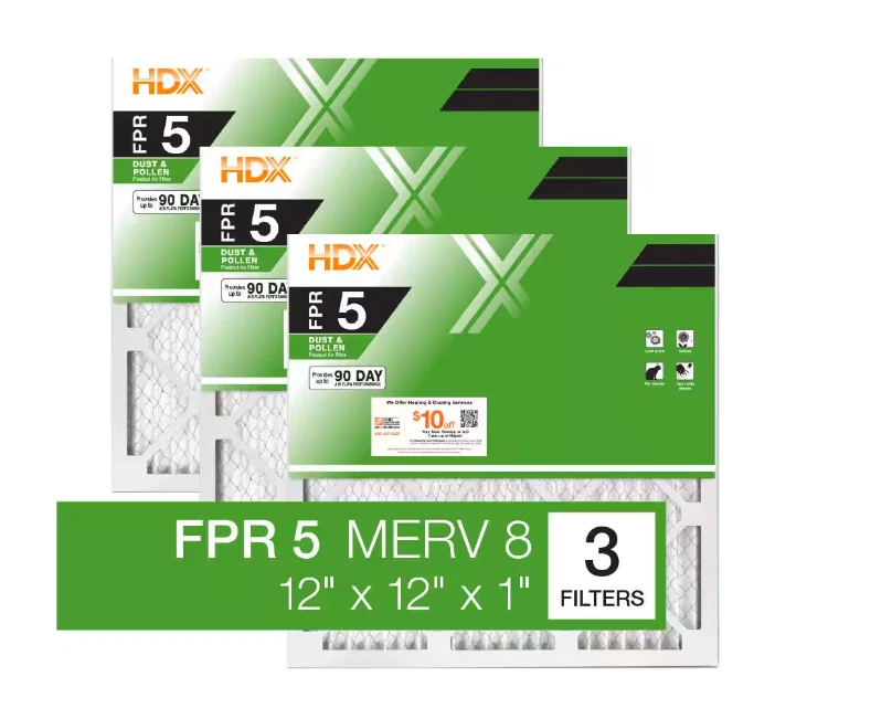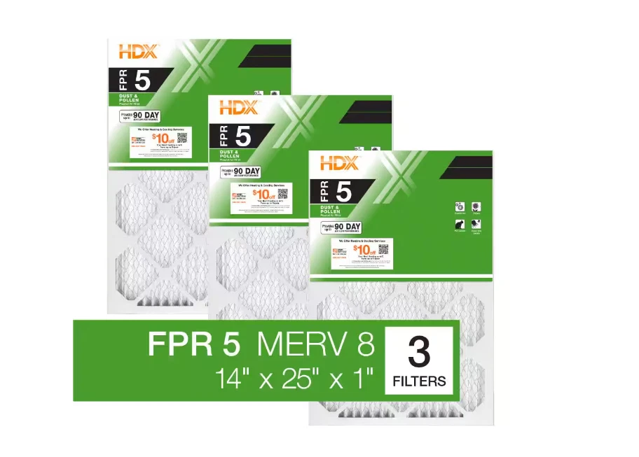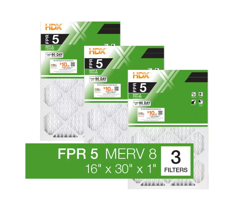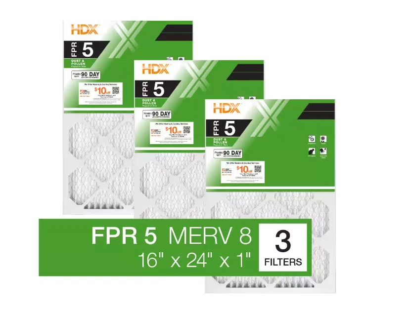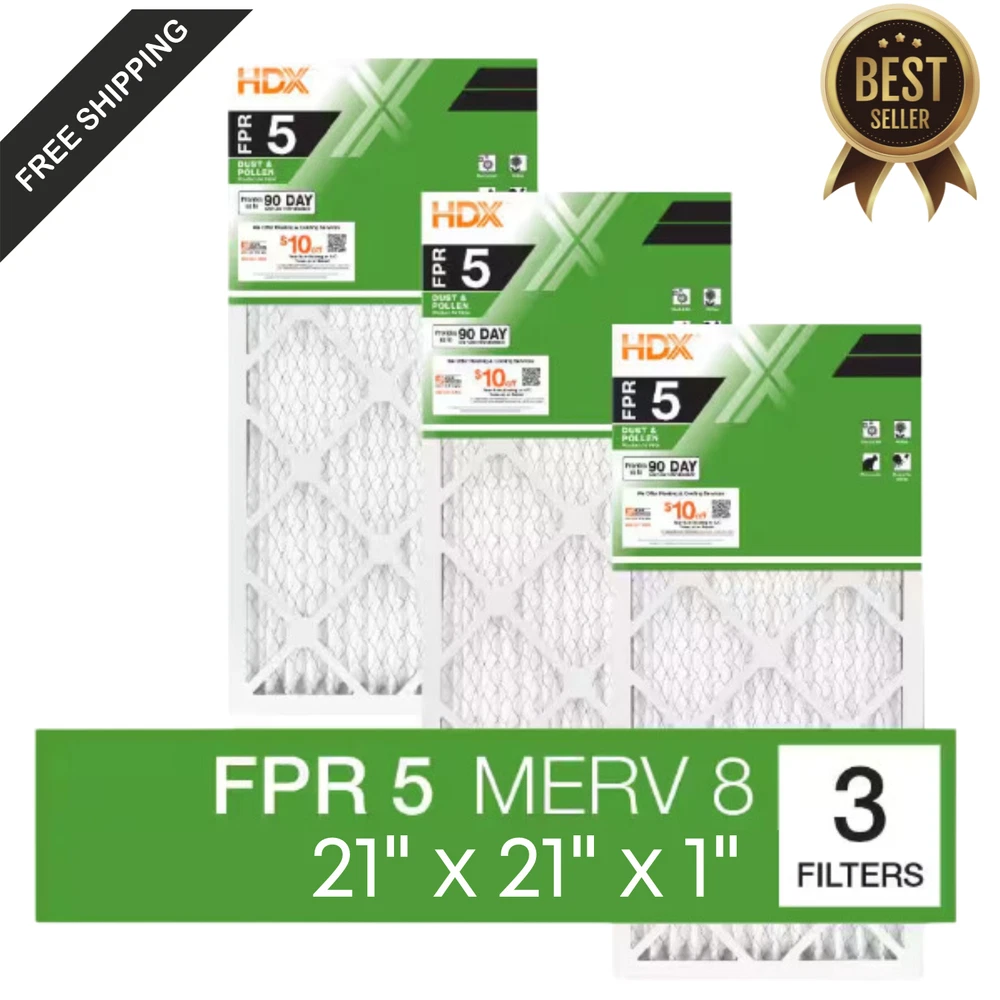 Pleated Air Filters Replacement For Furnace. AC HVAC MERV 8 FPR 5, 3-Pack New Description: HDX filters are constructed of a durable, moisture-resistant frame with wire supported media for strength and rigidity. The wire-backed Pleated media offers a large surface area which increases the filter's dust-holding capacity and improves its efficiency. The air filter media can be charged electrostatically which means it attracts, captures and traps particles that would otherwise bypass the filter. The air filter's media is rated between a MERV 8 and 13, which is one component of the FPR Rating. FPR or the Filter Performance Rating, is composed of 4-measurements for classifying air filters. Every rating includes 4-elements: MERV rating, E1 efficiency, pressure drop and dust holding capacity. MERV stands for the Minimum Efficiency Reporting Value and measures how well a filter traps particles. The higher the rating, the few particles getting through. E1 efficiency explains how well it traps the smallest particles. Pressure drop measures how much energy the HVAC unit will use to force air through the filter. Dust holding capacity describes how much dust a filter will hold in its lifespan. HDX filters are easy to replace making change-outs quick and keeping indoor air quality at its optimal level while protecting your HVAC unit and allowing it to perform efficiently. About Product: HDX air filters capture and trap allergens, airborne contaminants and other particles Created to provide higher efficiency and better overall performance than standard pleated filters Works in furnaces, HVACs, wall vents and ceiling vents Item represents 3 filters that will last up to 3-month, per filter, in a typical household environment and can be reordered through our subscription service Customer's Care: Please contact us before leaving Negative Feedback, Because We Always Take Care Our Customers, and Ready to Resolve their Issues Regarding Item. Thank You!