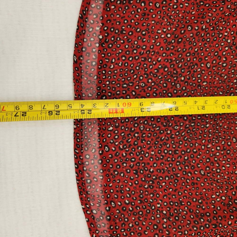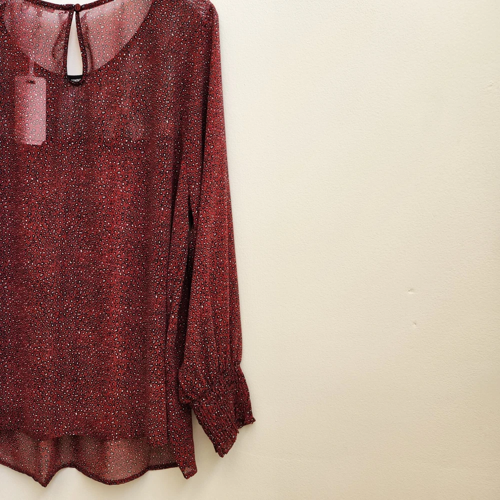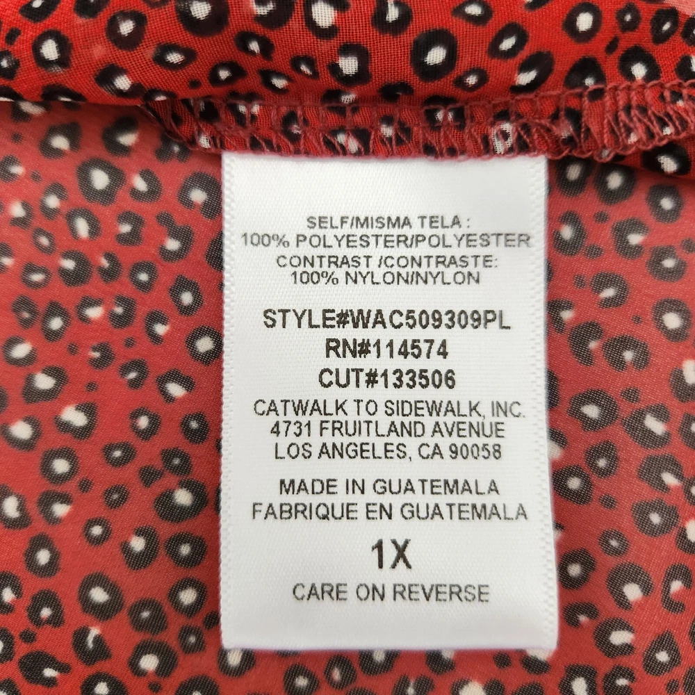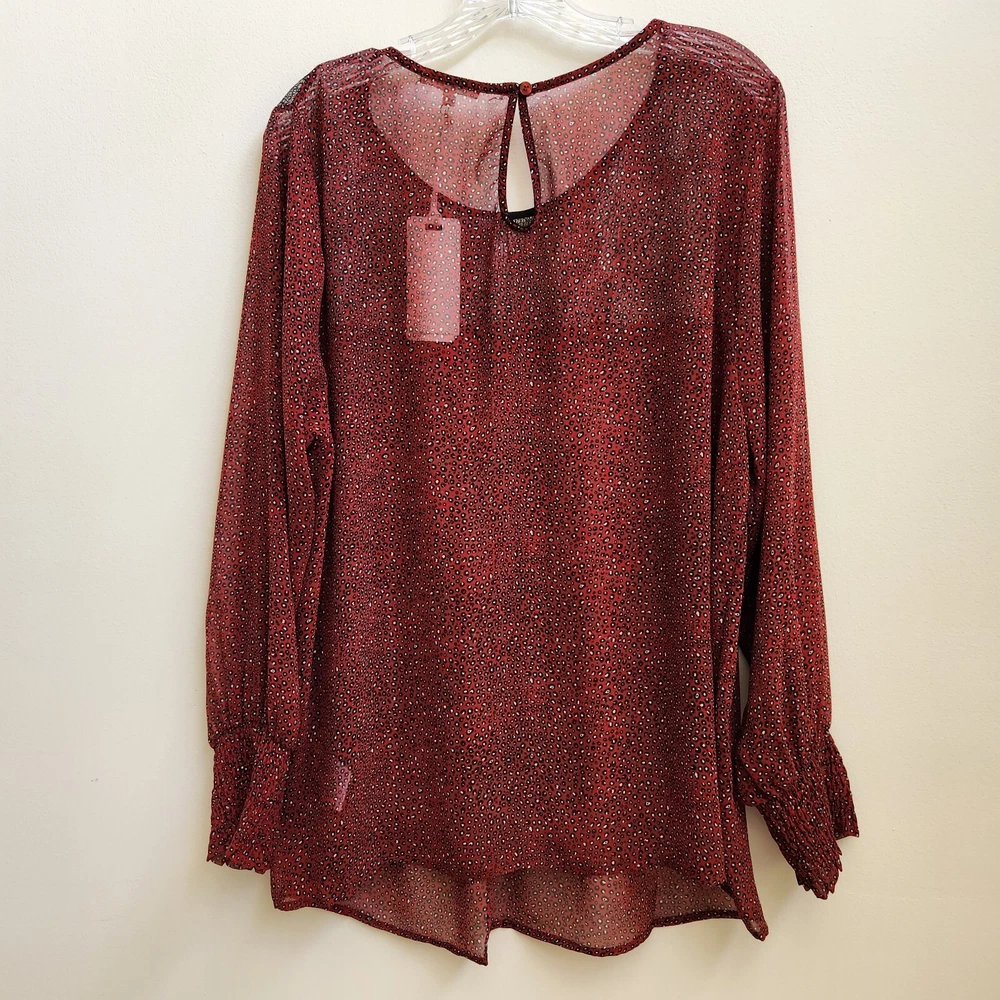 Pleione Top Womens 1X Red Black Lace Sheer Long Sleeve Blouse Boho Paw Print - NEW with Tags - Measurements in Photos - Returns acceptable within 30 days of purchase unworn, with tags attached, in original condition - Check out my E-bay Store. Lots of Choices Available. Reduced shipping for 2 or more items. Let me know before you pay so I can send you an invoice to discount the shipping