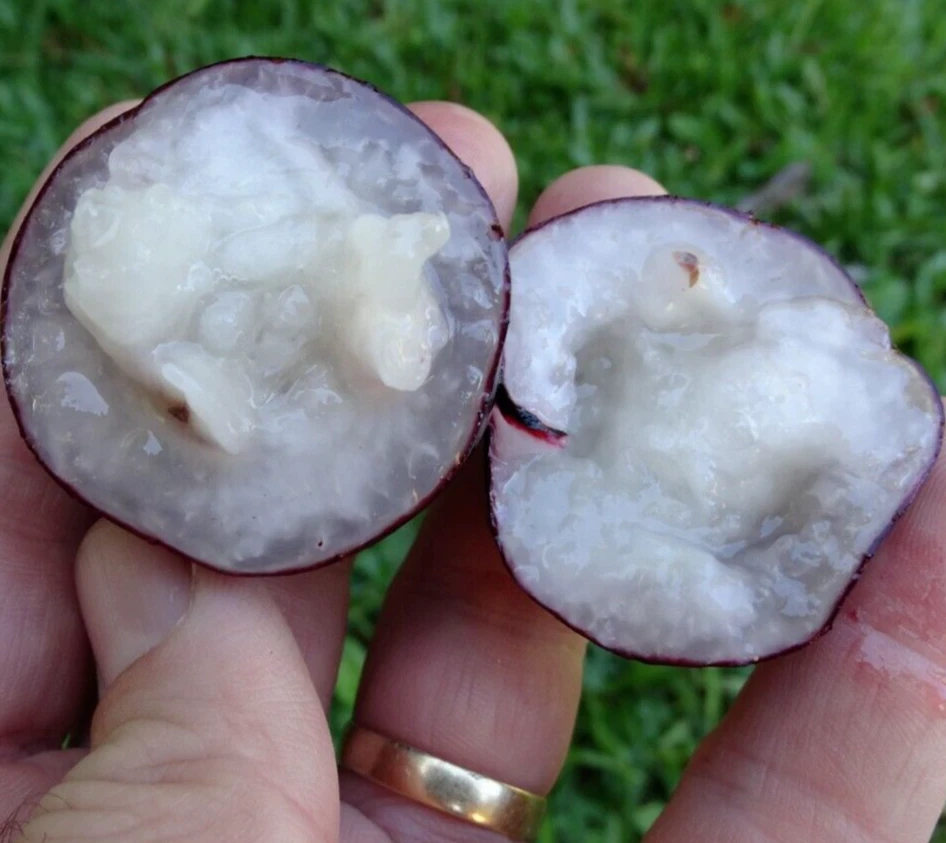 Plinia Trunciflora - "Gigante" Plant Information: 🌱 Name: Plinia Trunciflora - "Gigante" 🌱 Quantity: 1 Plant 🌱 Container: 4x4x6 Container Plant Description: Seeds were imported from Brazil. This is a Trunciflora jabotciaba that is being grown in Santa Catarina Brazil. The tree was found being cultivated there for its fantastic fruit quality. You can identify a Trunciflora Jabotciaba for its long penduncle, usually 1-4 cm long, and costate ribs on the fruit. This specie is also known for being able to produce fruits in as little as 4-7 years from seed. This tree if different than the regular Trunciflora, because the fruit produced are huge. Typically, the normal size of a Trunciflora Jabotciaba is around 2cm, these fruits were more than double that size, some measuring in at 5 cm across, that is just slightly smaller than a chicken egg. The fruits each have 1-4 seeds. The quality of these fruits are similar to that of other Jaboticaba, sweet with a great fruity flavor. Shipping Information: Shipping Time: Plants will ship as soon as payment is made or at a later date upon request. Weather Consideration: Please be aware of your local weather conditions upon the date of purchase. Handling Time - Winter: 10-day handling time as a safeguard to ensure safe shipping conditions. Spring, Summer, Fall: 3-day handling time. Shipping Area: Only ships within the USA. No international shipping. State Regulations: Shipping to some states, such as Arizona and California, carries risks. If you purchase and reside in these states, you agree to take responsibility if the plant is rejected, confiscated, or destroyed by state authorities. We are not liable for any such incidents, but we will still ship to you. Return Policy: If a plant or seedling arrives damaged, please reach out to us with a photo of the damage. We are more than happy to send a replacement or refund your money. Do not hesitate to contact us with any questions or concerns. We always check the weather before shipping, especially during winter, to ensure safe delivery. If there is an issue with the plant once received, please let us know as soon as possible. Most issues, such as wilted leaves, will resolve themselves as the plant acclimates to its new environment. Thank You for Your Purchase! Thank you for choosing our store for your rare plant needs. We look forward to serving you again! We are a registered and inspected Nursery in the State of Kentucky. #625A