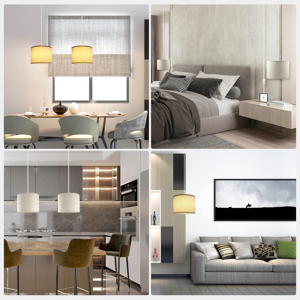 Store New Arrivals Add to Favorite View Feedback Contact Plug in Pendant Light, 15 FT Hanging Lamp with Plug in Cord, On/Off Switch, Pendant Lighting with Fabric Shade, Hanging Light Fixture for Living Room, Bedroom, Dining Room, Kitchen (Beige) Description Item model number 002 Light Source Type Halogen, LED, Fluorescent, Incandescent Style Modern Number of Items 1 Power Source AC Number of Light Sources 1 Control Method Remote Theme Modern Lighting Method Multiple (Halogen, LED, Fluorescent, Incandescent) Specification Met UL Controller Type Push Button Unit Count 1.0 Count Room Type Kids Room, Kitchen, Bedroom, Living Room, Home Office, Study Room, Dining Room Assembly Required No Product Dimensions 11"L x 11"W x 8"H Material Linen Installation Type 半嵌入式安装 Model Name Plug in Pendant Light-002 Specific Uses For Product Home Included Components 阴影 Fixture Type Non Removable Bulb Base E26 Country of Origin China Batteries Required? No Item Weight 1.5 pounds Light fixture form Chandelier Part Number 002 Shade Color beige Mounting Type Hanging,Pendant Light,Wall Mount Color Beige Wattage 60 watts Shape Round Voltage 120 Volts (AC) Plug Format A- US style Shade Material Linen Switch Type Push Button Our plug in hanging light with 15ft extension cord and switch, you can adjust the length to meet your lighting needs Hanging lamp no hardwiring required installation, just hang the pendant light at the right height, that plug into wall outlet, then turn the on/off switch Pendant light shade was made from the natural linen fabric, able to provide soft and pleasant light, great for living room, bedroom, study room, kids room, office, kitchen island, farmhouse Hanging lights with plug in cord adopts E26 USA Standard Lamp Base, UL Listed, compatible with any E26 base incandescent bulbs /LED bulbs/CFL bulbs/halogen bulbs, Max 60W. (NOTE: Bulb is Not Included) If you have any questions about our Hanging Light Fixture, please feel free to . We will help you solve it within 24 hours Product Description Plug in Pendant Light, With linen fabric lampshade, classic and beautiful, illuminate the warm and lovely home. Packing List: 1 x Plug in Pendant; 2 x Ceiling Hooks; 2 x Cord Clip;2 x Wall Anchor; 1 x User Manual. Hanging Lights With Plug in Cord Simple and versatile beige linen chandelier, a good choice for home decoration! Specification: Material: Metal&Fabric. Base Type: E26 Base. Bulb requirements: Incandescent, Halogen bulbs, CFL bulbs and, LED bulbs. Attage of Bulb: Max 60W. (NOTE: Bulb is Not Included). Oltage: 120V. (U.S. standard voltage) Safe and Comfortable Linen fabric chandelier that provides glare-free light, providing comfort and warmth to the interior while pampering your eyes. Adjustable The 15-foot extension cord allows you to adjust the height and length to suit your lighting needs. Easy to Install Pendant kit include wall anchor, ceiling hooks, cord clip, no hardwiring required installation, just hang the pendant light at the right height, that plug into wall outlet, then turn the on/off switch. Common Problem: Q1: Is this pendant light a hardwired or plug-in application? A:This is a Plug in Pendant Light, just plug the plug into the wall socket to use, no hard wire installation, simple and convenient. Q2:How big is the chandelier and what is the length of the power cord? A:The pendant lamp shade is 11 inches in diameter and 8 inches in height; the length of the power cord is 15ft, and there is a on/off switch on the middle of the cord. Q3:Is it easy to install? A:Installation is very simple. Just fasten the circular iron ring with the lampshade clip, put on the lamp holder to complete the installation, with a detailed installation manual. Q4:What bulbs do these hanging lamp use? A:The hanging lamp uses E26 lamp socket, Can use incandescent, halogen, CFL and LED bulbs, Max 60W. (NOTE: Bulb is Not Included). ABOUT US We offer the best prices around on high quality products. Our E-store includes media such as books, movies, music and games while offering electronics, toys, sporting apparel, clothing, tools, general home, garden items and more. SHIPPING We are always working hard to ensure your package arrives as soon as possible. Please understand that some factors like weather, high postal traffic, and the performance of shipping companies are outside of our control. We offer free shipping to the lower 48 states and ship within 2 business days of payment, usually sooner. We do not accept P.O. Boxes. Please provide a physical address. For shipping outside of the continental USA, we only use eBay's Global Shipping Program.The item is shipped to KY and then sent to the rest of the world. International customers are responsible for all duties and taxes. Continue to check out in order to calculate costs for shipping the item to your country. Messages regarding eBay's Global Shipping Program MUST be directed at eBay EXCLUSIVELY. RETURNS We offer a 30-Day Return Policy on items which you are not completely satisfied with. You have the option for a full-refund or an exchange of the item. No returns are available on items shipped outside of the USA. PAYMENT We accept PayPal. CONTACT US This page content is yet to come Please ad us to your favorite seller and visit again later Thank You CUSTOMER SATISFACTION We try our very best to make sure every customer is completely satisfied. If there's a problem, message us! We're happy to help. WE ACCEPT Copyright © 2021 AutoDS. | All Rights Reserved