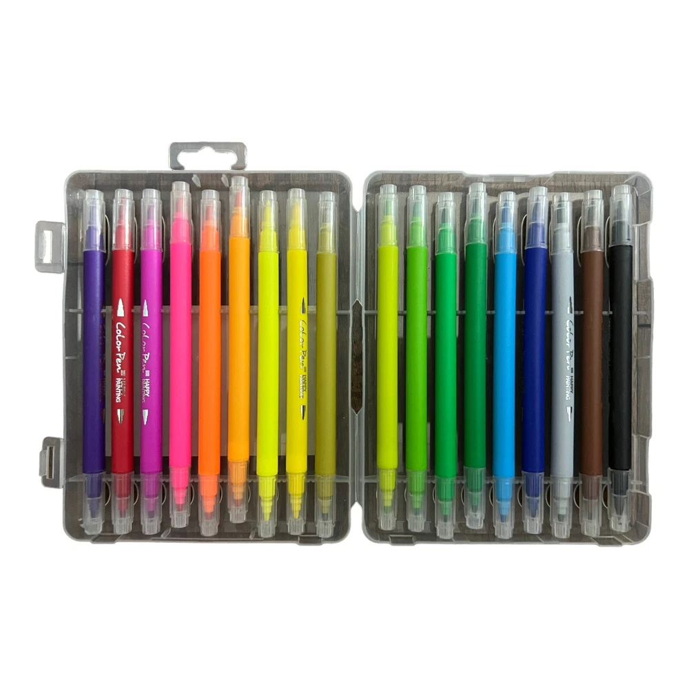 Dual Tip Watercolor Marker Set - 18 Colors - Unleash Your Artistic Expression Key Features: Dual Tips: Fine tip for intricate details, brush tip for broader strokes Vibrant Colors: Set of 18 vibrant watercolor shades Water-Based Ink: Blendable and easy to layer for creative effects Versatile Use: Ideal for drawing, coloring, and watercolor techniques Portable: Compact set for on-the-go creativity Durable Build: Quality markers for lasting artistic endeavors Non-Toxic: Safe for artists of all ages Product Description: Ignite your artistic flair with the Dual Tip Watercolor Marker Set featuring 18 vivid colors. This set is designed to elevate your creative projects with its versatile dual-tip design. The fine tip allows for intricate detailing, while the brush tip enables broader strokes and watercolor effects. With a spectrum of 18 vibrant colors, these markers offer endless possibilities for your artistic expression. Formulated with water-based ink, these markers are blendable, making them perfect for layering and achieving unique creative effects. Whether you’re into drawing, coloring, or experimenting with watercolor techniques, this set has you covered. The compact and portable design makes it easy to unleash your creativity on-the-go. Crafted with a durable build, these markers ensure lasting artistic endeavors that stand the test of time. These watercolor markers are non-toxic, making them safe for artists of all ages. Elevate your artwork and explore a world of colors with this Dual Tip Watercolor Marker Set. Additional Information: • Tips: Dual tips (fine and brush) • Colors: 18 vibrant shades • Ink Type: Water-based • Application: Drawing, coloring, watercolor techniques • Portable: Yes • Condition: I used it only once for color catalog that you can see in the photos. If you have any questions or concerns about the product please feel free to contact me.