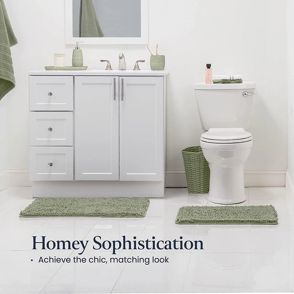 These bathroom rugs are incredibly soft and luxurious—stepping out of the shower feels like walking on a cloud! The quick-dry chenille material is super absorbent, and the non-slip backing keeps them securely in place. Easy to wash and durable, they add a cozy touch to any bathroom. Perfect size set, great quality, and definitely worth it!