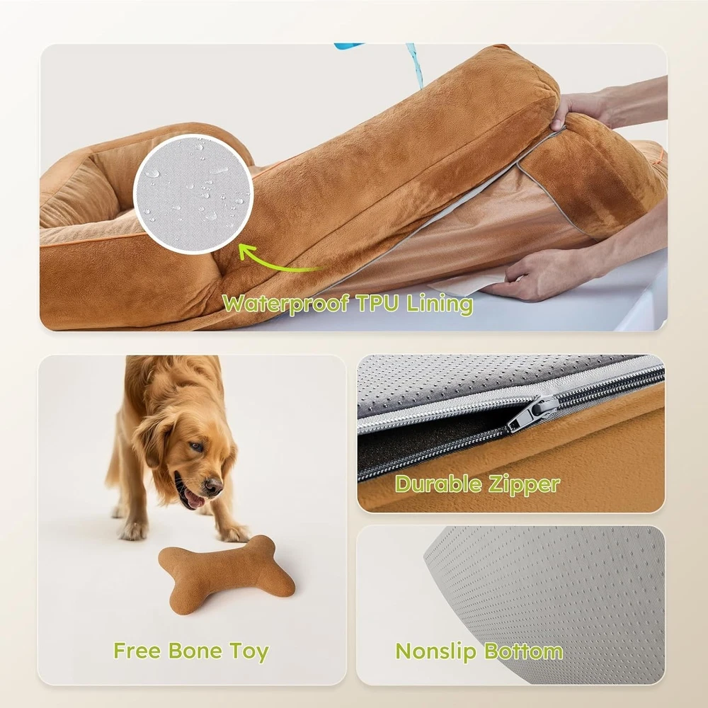 Plush Jumbo Dog Bed with Cooling Properties - Ideal for Extra Large Dogs, Brown ‹ › ‹ › ‹ › ‹ › ‹ › ‹ › ‹ › ‹ › ‹ › ‹ › ‹ › Plush Jumbo Dog Bed with Cooling Properties - Ideal for Extra Large Dogs - Luxurious Brown Finish Features: Orthopedic Support: Filled with a 4" thick layer of high-density orthopedic foam, providing optimal joint support for older dogs or those with arthritis. Cooling Gel Foam: Infused with a generous layer of cooling gel foam for a blissfully cool rest on warm days. Luxury Comfort: Cover made from soft, plush Dutch velvet, gentle on pets’ noses and paws, perfect for anxious animals. Waterproof & Washable: Features a waterproof TPU lining to protect against spills and accidents. The cover is removable and machine washable. Pet Safe Materials: Crafted with OEKO-TEX Standard 100 certified fabric and CertiPUR-US certified memory foam, ensuring a safe resting environment. Secure Resting Spot: A nonslip bottom that keeps the dog bed securely in place during use. Bonus Bone Toy: Includes a durable dog chew toy for added fun and enrichment, making this an irresistible pet upgrade. Benefits: Provides superior orthopedic support to ease discomfort caused by age or arthritis. Cooling properties to keep your furry friend comfortable during hot weather. Easy to maintain with a waterproof layer and machine washable cover. Safe materials ensure a cozy and healthy sleeping environment. Includes a fun toy to enhance your pet's playtime and relaxation. Why choose our Plush Jumbo Dog Bed? Pamper your loyal companion with our Plush Jumbo Dog Bed, designed specifically for extra-large dogs who deserve the best in comfort and support. Our orthopedic foam not only cushions achy joints but also assists older pets in finding restful sleep. The innovative cooling properties will ensure your furry friend stays comfortable even on the hottest days. Plus, the inclusion of a chew toy makes this luxurious bed a delightful sanctuary for play and relaxation. Transform your pet’s sleeping experience and promote their well-being - order the Plush Jumbo Dog Bed with Cooling Properties today! Shipping Free & Fast Shipping - We offer free shipping to most of the USA with a normal delivery time of 3-7 days. However, due to the current situation, additional delivery time (up to 3 weeks) may be required for some items. Alternative Carriers - We may use alternative carriers (e.g. USPS, FedEx, UPS, etc.) to ensure your package arrives safely and on time. Due to the use of multiple carriers, we are unable to provide a tracking number automatically. Handling Time - Orders are processed and shipped within 1-2 business days of receiving cleared payment. Shipping Restrictions - Shipping to Alaska, Hawaii, Puerto Rico, Guam, and other US territories may incur shipping charges or delivery restrictions. Please contact us before ordering, or your order can be refunded/cancelled. State Restrictions - There may be restrictions based on your state of purchase. For example, certain items may not be shipped to California due to state regulations. Contact for Tracking Updates - If you require tracking updates or have any concerns about the delivery of your order, please feel free to contact us, and we will be happy to assist you. Return 30-Day Hassle-Free Returns - We want you to be completely satisfied with your purchase. If you are not, you can return the item within 30 days of receiving it for a full refund or exchange. Easy Return Process - To start a return, simply contact us and we will provide you with a prepaid return shipping label and detailed instructions. Restocking Fee - There are no restocking fees for returns. However, the buyer is responsible for return shipping costs if the return is not due to a seller's error. Refund Processing Time - Refunds will be processed within 5 business days of receiving the returned item in its condition. Payment We accept all major credit cards, PayPal, and Apple Pay for your convenience. Your payment information is secure and encrypted to ensure a safe and seamless transaction. Please complete your payment within 3 days of purchase to avoid any delays in shipping. Feedback Your feedback is extremely important to us. We strive to provide the best products and customer service possible. If you are satisfied with your purchase, please take a moment to leave us a positive review. If you have any concerns or issues with your order, please contact us before leaving negative feedback. We are committed to resolving any problems and ensuring your satisfaction. Contact Us If you have any questions or concerns, please feel free to out to our customer support team. You can contact us through the eBay messaging system. We are available Monday to Friday, 9:00 am to 5:00 pm EST, and we will do our best to respond to your inquiry within 24 hours. Buy it now and enjoy a pleasant shopping experience! Model: Dog Bed for Large Dogs MPN: Dog_Bed_for_Large_Dogs Unit Quantity: 1.0 count Features: Cooling,Machine Washable,Orthopedic,Removable Cover,Waterproof,Pet Safe Materials,Non-Skid Bottom,Easy to Clean Dog Size: XL Dog Breed: Giant Type: Sofa Material: Velvet