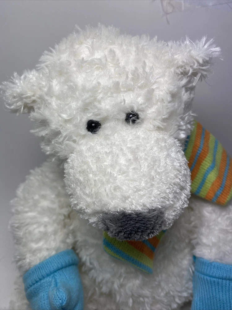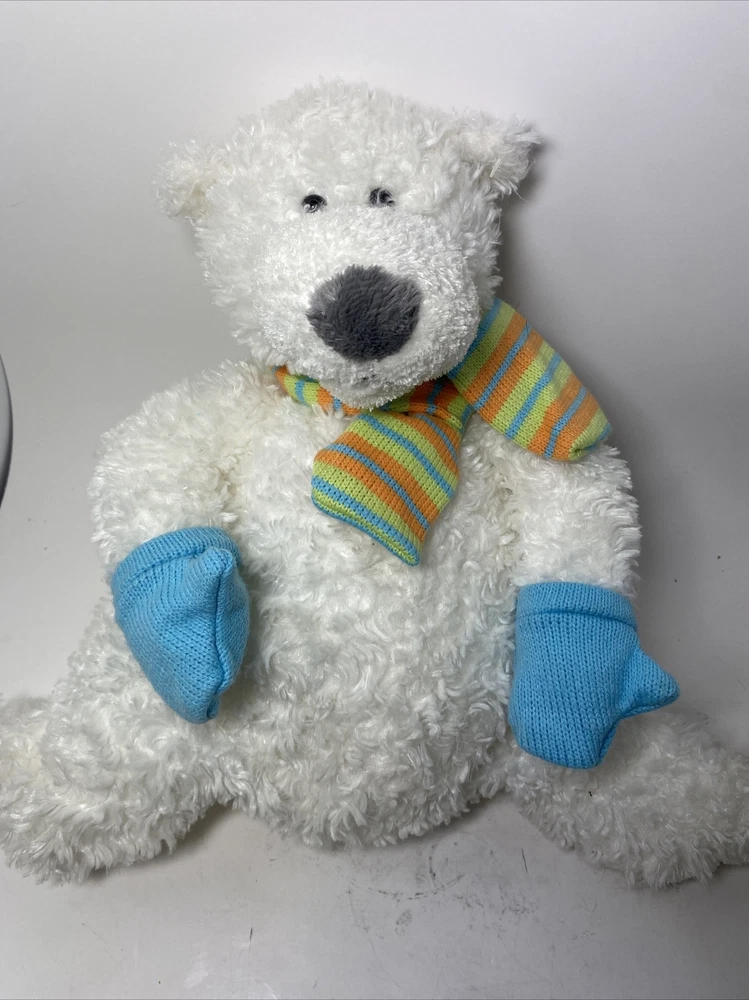 Plush Polar Bear Mary Meyers Mittens. Super cute fluffy polar bear with scarf and mittens. He is lightly weighted in the bum with pellets. In good condition with no issues.