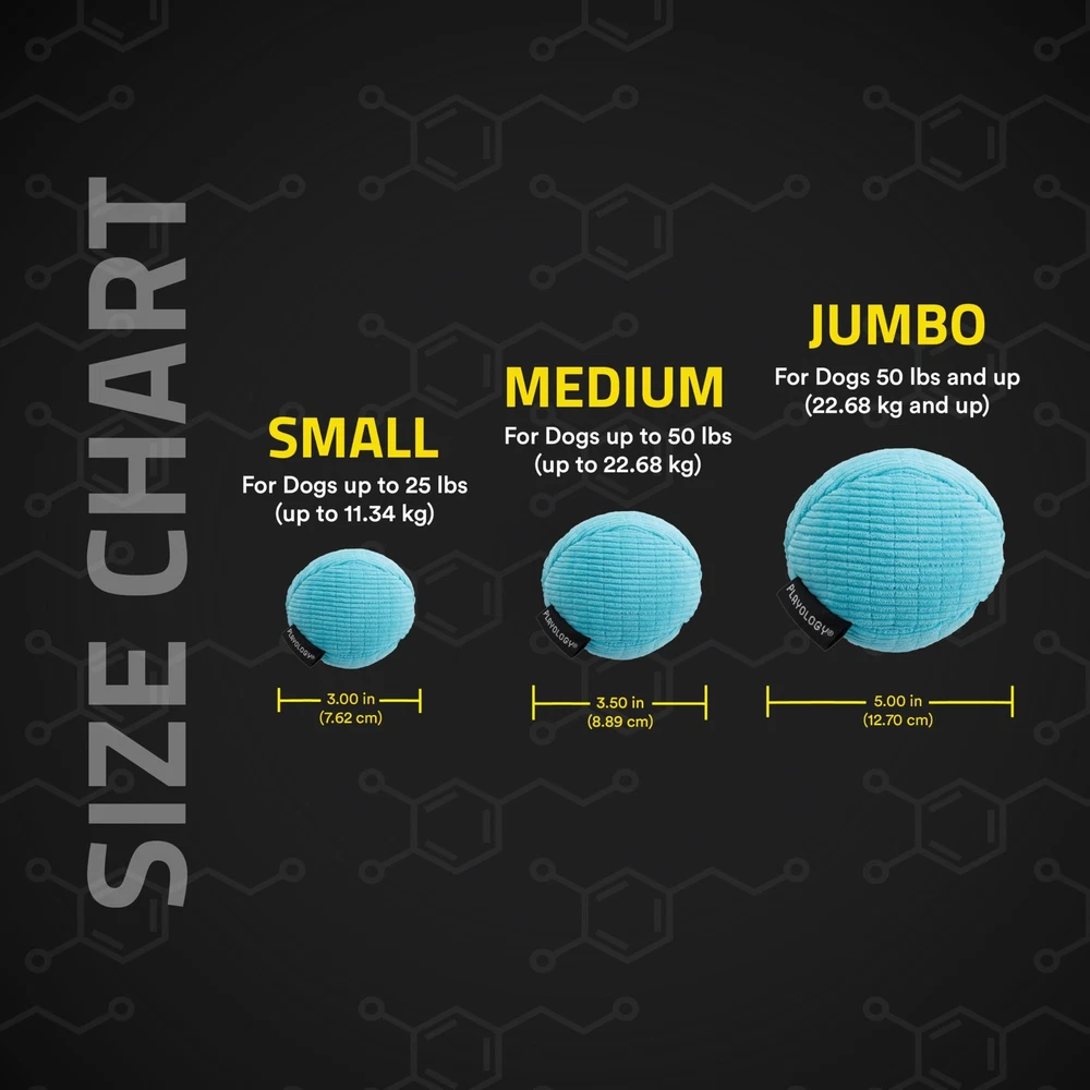 durable plush pet toy designed for even the toughest chewers MEET THE PLUSH SQUEAKY BALL: With a bite-resistant felt middle later, a soft corduroy outer shell, and a fun squeaky feature, this plush ball toy has everything your pup is looking for! The diamond quilting provides maximum durability, and the mesh inner layer holds an irresistible all-natural Peanut Butter scent to keep your dog playing and chewing 7x longer than unscented plush toys. The Jumbo size is ideal for dogs 50 lbs and up. ENCAPSISCENT TECHNOLOGY: A dog’s sense of smell is 10,000x more powerful than a human’s. Dogs experience the world through scent, so we make interactive dog toys with the all-natural scents they love. Every dog toy is embedded with an all-natural scent at the microscopic level. The fresh bursts of scent that are released with each chew will keep your pup engaged 7x longer than unscented toys. EASY TO CLEAN: Dirt and sand trapped on the surface of a toy can grind down your pup’s teeth, that's why we make all our dog toys easy to clean. With our Encapsiscent Technology, the all-natural scent is embedded throughout the material of each toy, so no need to worry about washing away the scent your pup loves. Just toss the plush toy in the washing machine and tumble dry with low heat. FOUNDED BY DOG LOVERS: When we developed , we looked at the science behind what made dogs enjoy their toys. We reviewed the safety standards used to protect human children and designed our dog toys utilizing those standards. Each toy is tested to meet ASTM guidelines for safety and the CPSIA standards for leads, phthalates, and other toxins deemed hazardous. Everyone at remains committed to designing and developing the best, safest and healthiest toys we possibly can HAPPINESS : At , we're more than just toys; we're about making tails wag and ending the toy graveyard blues. So, if you encounter any issues or if your furry friend isn't overjoyed with our products for any reason, we're here to save the day. Your dog's happiness is our !
