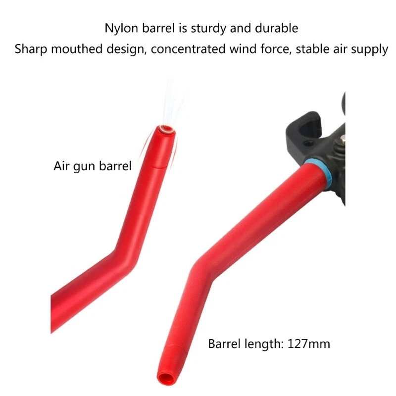 Pneumatic Air Blow Triggers Compressor Blower Nozzle Pneumatic Features: and high Can blow away hard-to-reach dirt and debris, and are enough to use in daily life or industry The nylon air blow tools are stable to rust and corrosion so that you can keep them for long-time. Air compressor tools built in hanger slot angled nozzle, can easily get into narrow space, which also are easy to carry out you want. Air blow tools can be applied in blowing blowing water, blowing powder, blowing sundries and various industrial or household and blowing operations, which are easy to handle the dirt on the surfaces of hard-to-reach crevices, equipment, tools, truck beds, handle, and anti-fatigue, not easy to break, comfortable to hold. Specifications: Nylon+Metal Tube length: 127mm Handle length: 86.5mm Wrench length: 83mm Hole aperture: 7.5mm Nozzle aperture: 4mm Package Includes: 1x Air Blow note: 1.Please allow 1-2cm errors due to manual measurement, make sure that you do not mind before you order. 2.Due to the difference between different monitors, the picture may not reflect the actual color of the item.