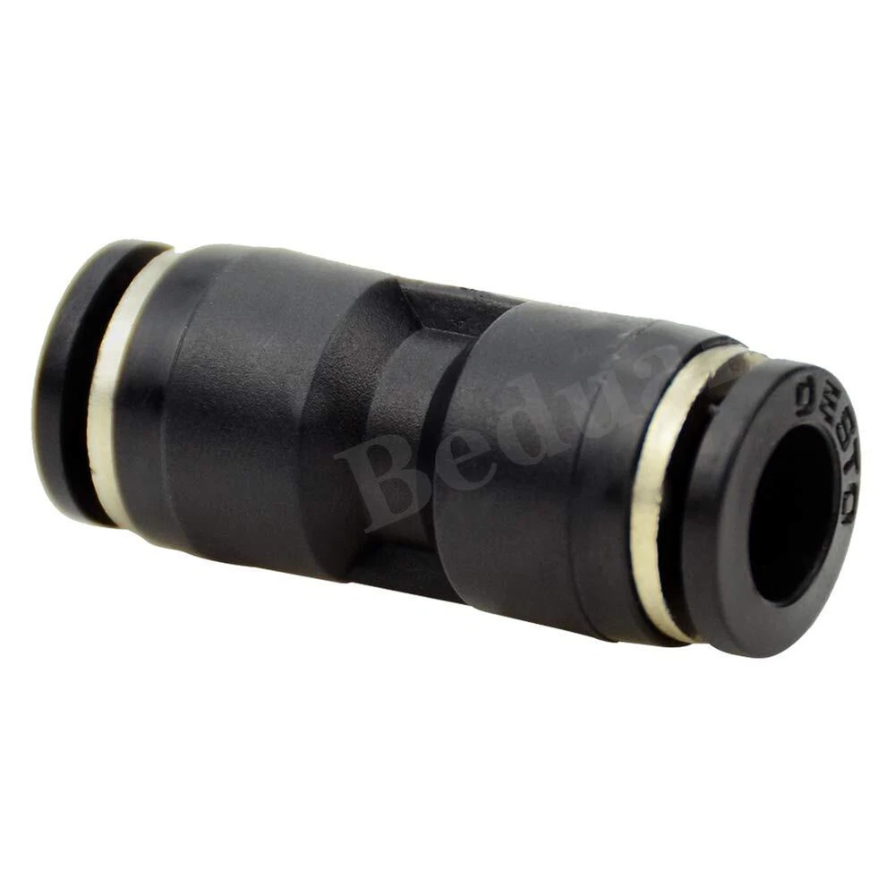 Pneumatic Fittings are a compact one piece push-to-connect fitting. All items in the Pneumatic composite range are silicone free. The Stainless steel gripping ring ensures excellent tube retention while the D seal within the fitting provides a positive seal on the O.D. of the tube, in both static and dynamic positions, due to an optimized design of the fitting cavity. Pneumatic composite should not be used for live swivel applications Body and collar are made of Nylon 6.6, gripping ring is stainless steel, and D seal and O-rings are Nitrile. Type:Push in fitting/Push to connect / Size:3/8" Straight Union Connector Fluid Admitted:Air Vacuum Water (no freezing) Working Pressure:0-1.0MPa | 0-150psi/Applicable Tube:PU / PA / PE / PVC Proof Pressure:3.0Mpa | 435psi.Seal O-ring:NBR/ Lock Claw:Stainless Steel(SUS)/Body:Plastic(PET) Working Temperature:0-60°C | 32~140°F/Negative Pressure:-100Kpa | -29.5 In Hg