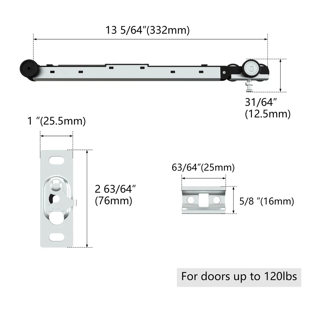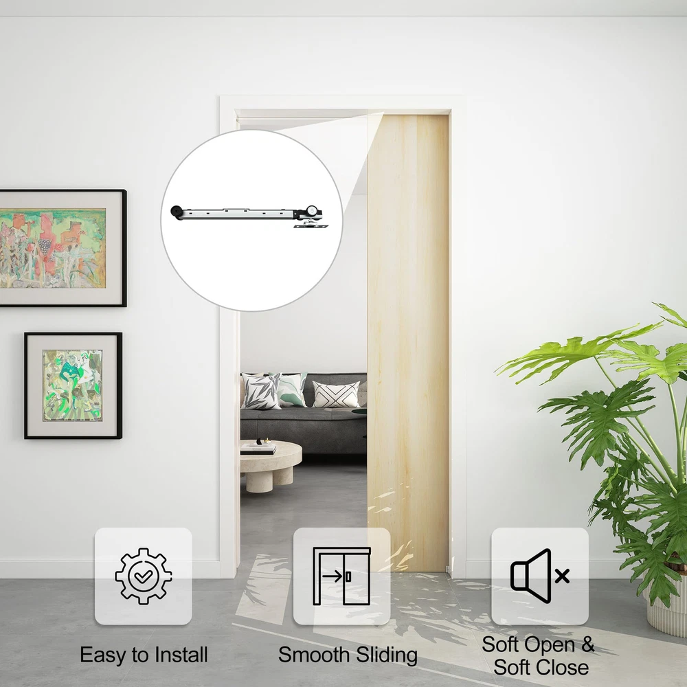 is a company that aims to create healthy, comfortable and exquisite spaces for global consumers by intelligently manufacturing quality products.Our factory has specialized in developing and manufacturing sliding doors and hardware kits for 15 years. Advanced Design: Only one soft-close mechanism is needed to achieve soft opening and closing. Keep Quiet: After installing the soft-close mechanism, the door will no longer hit the door jamb, making it quiet when you open and close door. Smooth Sliding: Three-wheel hanger ensure all wheels carry door weight equally, with heavy-duty ball-bearing offer minimum friction and smooth, quiet rolling. Specification: The length of the soft-close mechanism is 14.2", the width is 1.54" and the thickness is 1.78". Scope of Application: This soft-close mechanism can be installed in our Commercial Grade Pocket Door Hardware and Track Set, making it a soft-closing pocket door kit. Pay Attention: Please refer to the size picture for dimensions and compare with your needs before ordering. This roller is suitable for /BARNSMITH/EaseLife/SongYung/DIYHD pocket door kit and SMARTSTANDARD/TMS/EaseLife/DIYHD/COSHOMER/SongYung bypass sliding door hardware. We do not ensure compatibility with brands other than these.