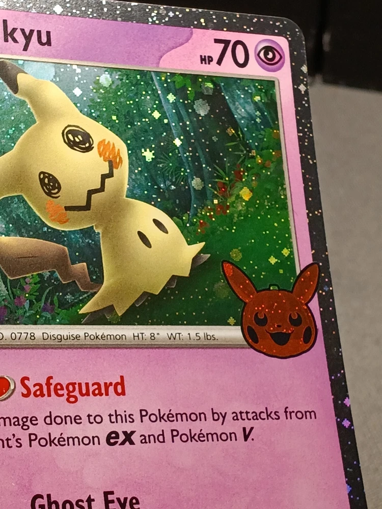 This rare Pokémon TCG card features Mimikyu, a Ghost/Fairy creature with 70 HP. The card is from the Halloween Trick Or Trade set, manufactured by Nintendo in 2024. It is a standard-sized card made of card stock with a stamped finish and a holographic design. The card number is 37/91 and it is a basic stage card. The card is in English language and has no autographs. It is suitable for collectors aged 6+ and is not vintage. The card is perfect for any fan of the Pokémon TCG game.