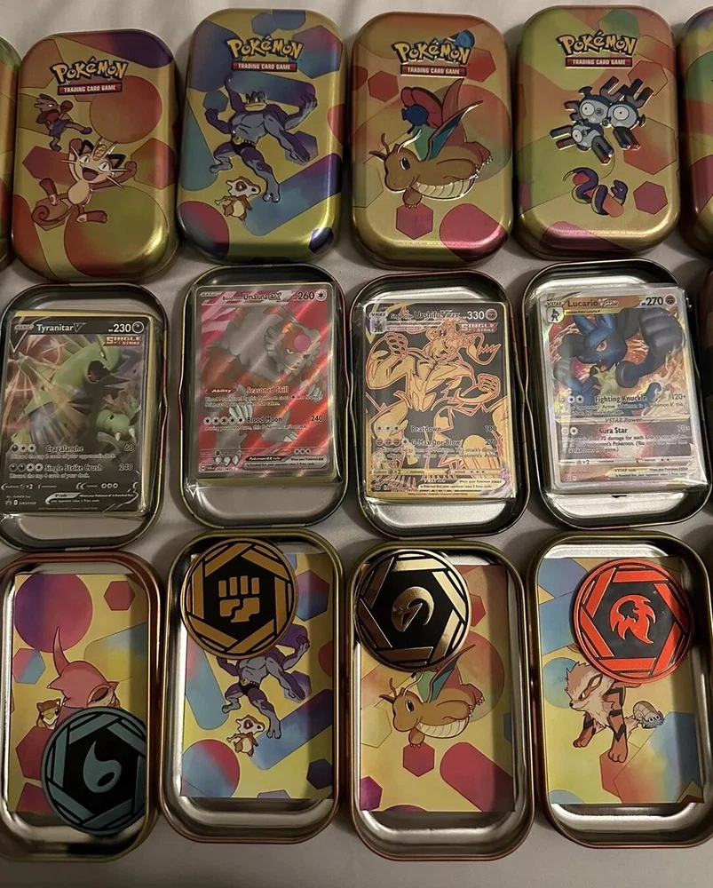 Great gift for kids! This Pokemon 50+ Card Lot is a must-have for any Pokemon TCG collector or player! This Mystery Lot contains cards from both the sword/shield and scarlet/violet era. At least 1 Hit per pack (this could be any Pokémon ex, double rare, ultra rare, illustrator rare, promos,etc.). 50 common/uncommon cards with Mixed number of holos and reverse holos thrown in.(Pokémon only no energies or trainers) 4 QR code cards! All packed into a random mini tin with stickers and coin included! These from my own collection. I try my best to make sure there are no duplicates. I hope you enjoy opening these packs! Go catch them all! NOTE: These packs are Pokémon only! However some tins will have trainers added but only trainers that are either Illustrator rare, double rare or ultra rare. NOTE: Most mini tins are 151 tins, however there are a few random tins from other sets. You will receive a random mini tin from what I have available. Requests for a specific mini tin will only be considered if you message me before purchasing and if it is still available! Additionally, tins may have minor dings but nothing major. I do my best to QC the tins prior to packaging. NOTE: Due to quality control of Pokémon products, cards will range from NM-LP. They are pack fresh, but some cards still have print lines and factory scratching. You will never received cards that are HP or damaged. Please consider this before purchasing.