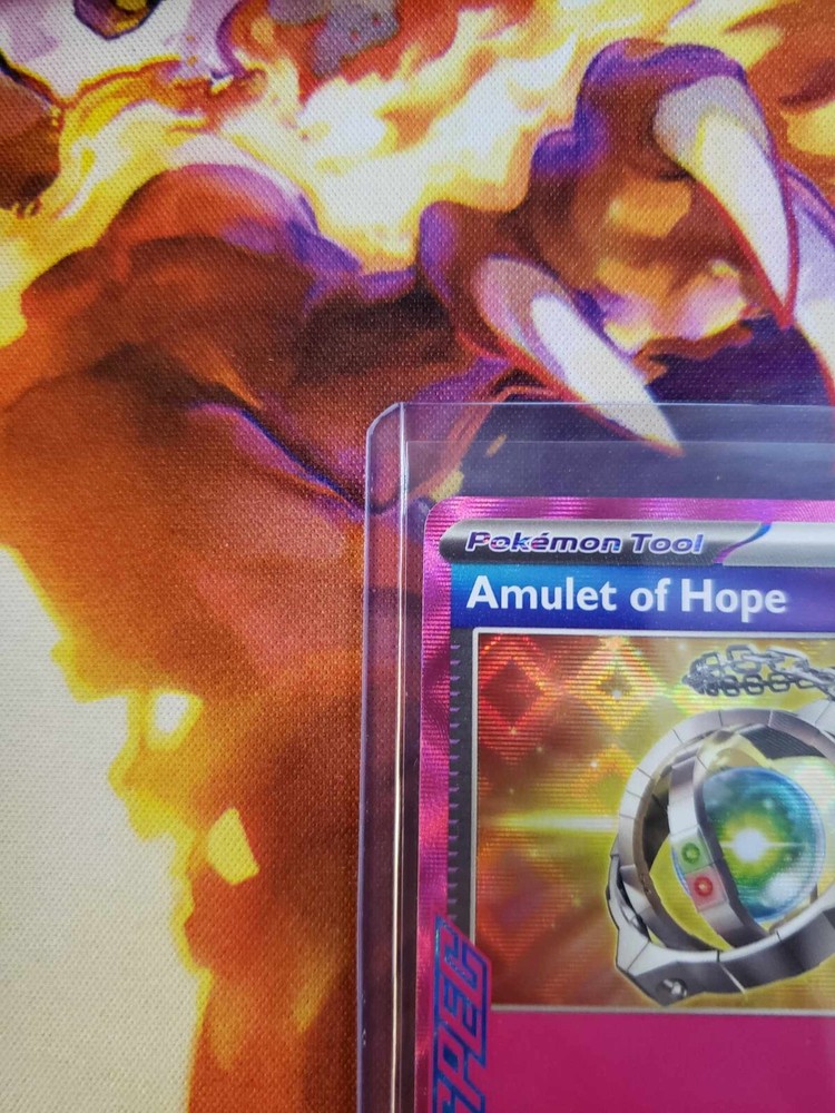 This rare and highly sought-after Pokémon Amulet of Hope card is a must-have for any serious collector or fan of the Pokémon Trading Card Game. With its stunning full art design and holographic finish, this card is sure to impress and dazzle anyone who sees it. Featuring the powerful Surging Sparks Ace Specs rarity, this card is a true gem in the Scarlet and Violet Surging Sparks set. Manufactured by Nintendo in the United States and illustrated by Toyste Beach, this English-language card is made of high-quality card stock and is suitable for ages 6 and up. Don't miss your chance to add this amazing card to your collection today! What you see in the listing image is what you get! Standard International Shipping - Tracking Provided by Hong Kong Post Shipped with bubble mail and toploader to protect the card. Import duty, Taxes and other charges not included.