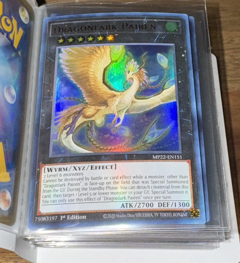 The listing is for a Pokemon binder with all holo rare dragon cards which are near mint