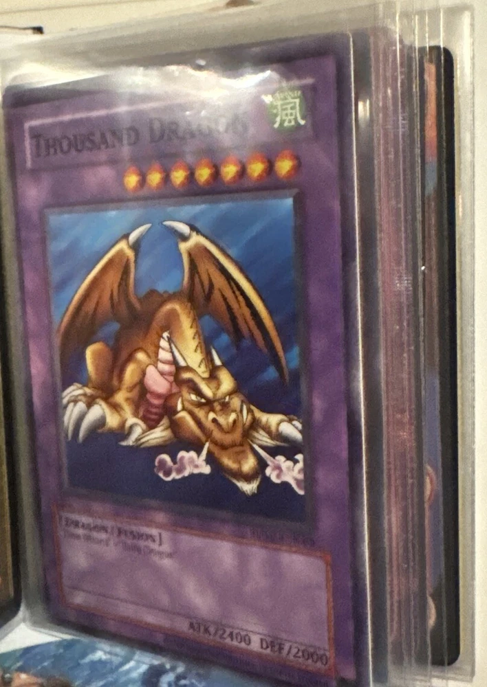 The listing is for a Pokemon binder with holo rare dragon and mage cards from Pokemon, Yu Gi oh, and Magic the gathering. Near mint and 30 cards total