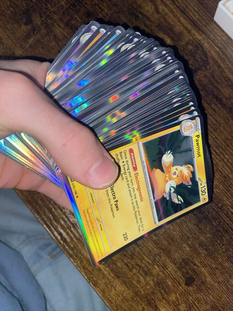 Dive into the vibrant world of Pokémon with this expansive card lot featuring 147 holographic treasures from various popular sets. Whether you're a seasoned collector or just starting, this selection offers a diverse array of characters and strategies from recent expansions like Scarlet & Violet - Obsidian Flames to timeless classics like Evolutions. Each card is in English and maintains a regular finish, showcasing the iconic artwork that has made the Pokémon TCG a global phenomenon. Proudly manufactured by Nintendo, these cards are a must-have for enthusiasts looking to bolster their collection with a mix of strategy, rarity, and nostalgia.