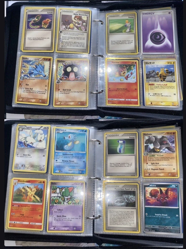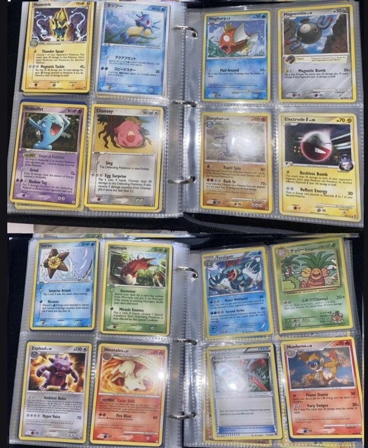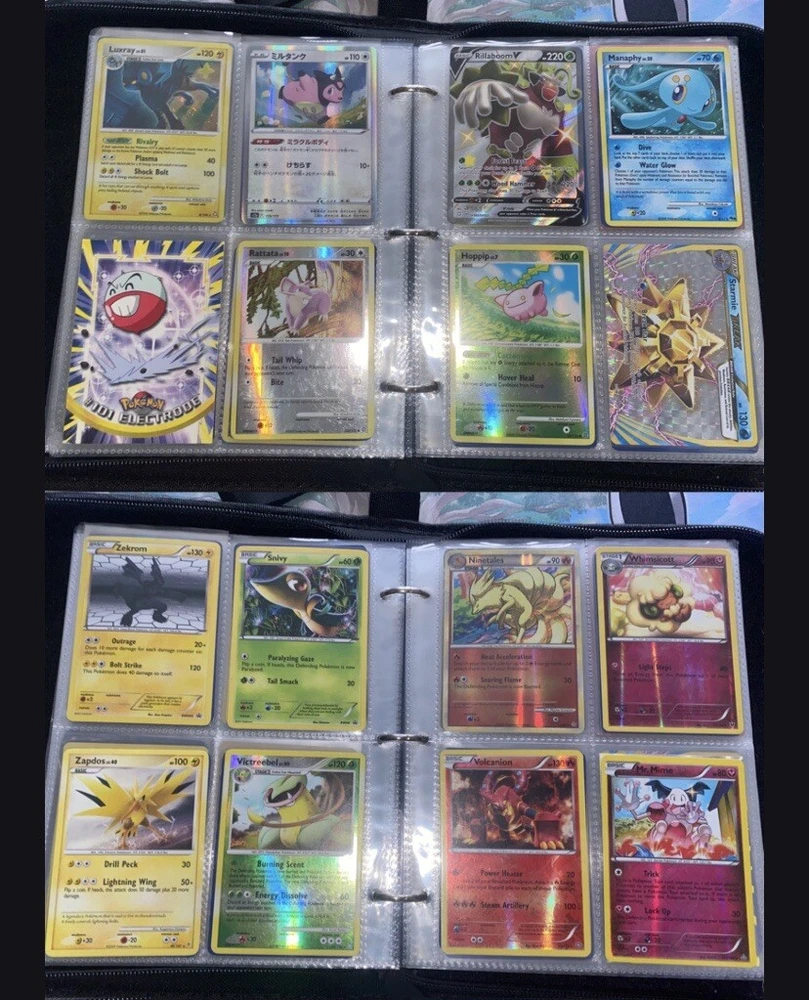 This Pokemon collection features over 250 cards ranging from vintage to modern, including EX E Readers and more. The set includes popular characters like Zapdos, Gengar, Charizard, and Pikachu from sets like Diamond & Pearl, Neo Genesis, Sun & Moon, and Sword & Shield. The cards are in varying condition and are ideal for collectors looking to add a mix of unique and classic Pokemon cards to their collection. Binder is not a part of the lot. Cards will be taken out of binder and shipped separately. Over 250 cards in this lot from vintage to modern era. Took additional photos for some of the rare cards. If additional photos are needed, please reach out and ask. Message me with any questions. Happy Hunting